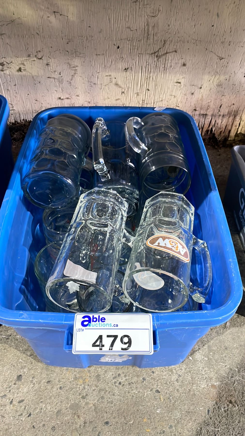BIN OF ASSORTED VINTAGE A&W GLASS MUGS * BIN INCLUDED * - LARGE