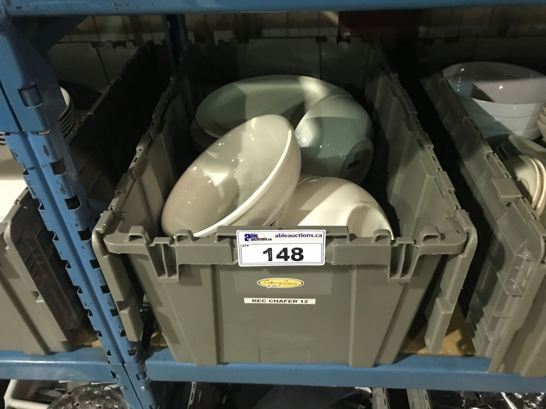 BIN OF ASSORTED WHITE COMMERCIAL DISHWARE ( BIN NOT INCLUDED )