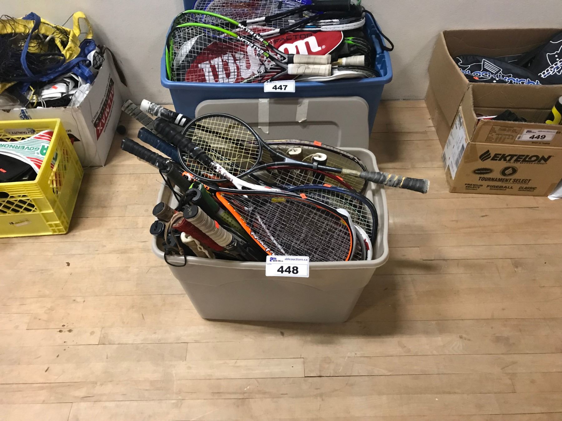 BIN OF BADMINTON/SQUASH/TENNIS RACKETS