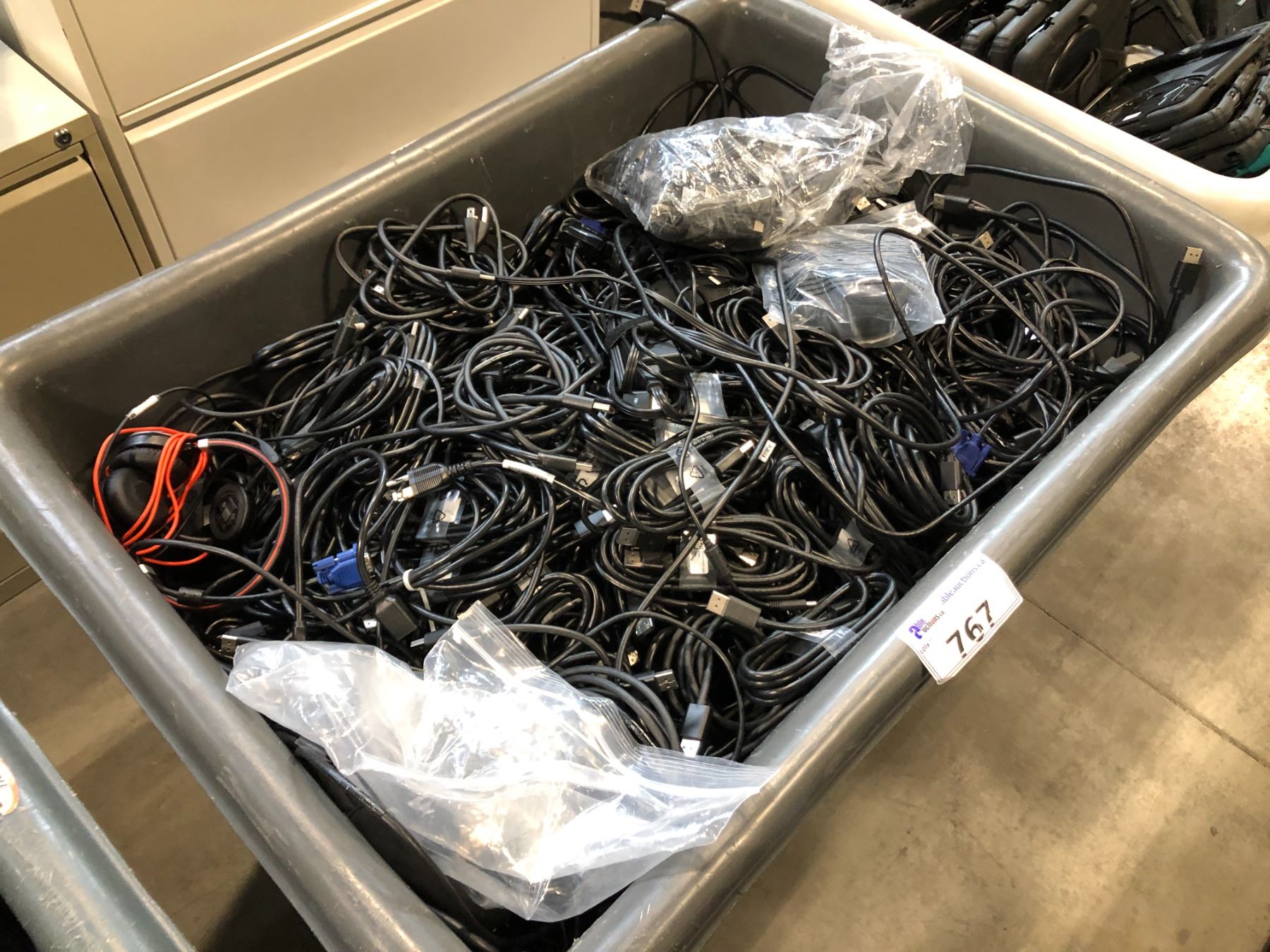 BIN OF CABLES AND MISC. ELECTRONICS - BIN NOT INCLUDED