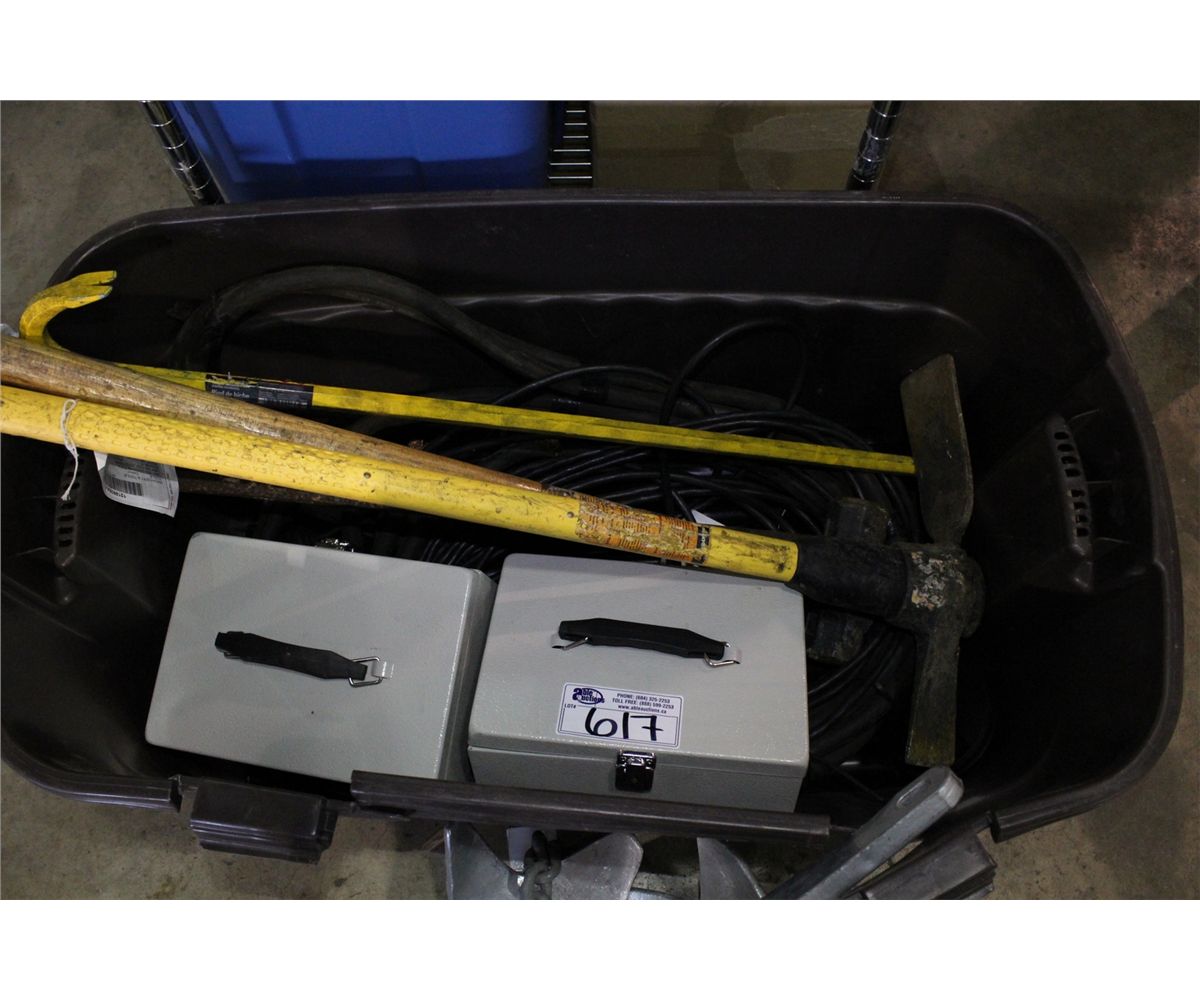 BIN OF ELECTRICAL AND LARGE TOOLS