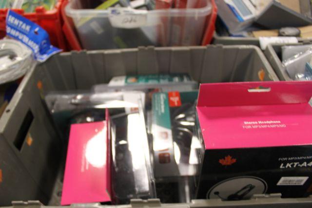 BIN OF ELECTRONIC STORE INVENTORY