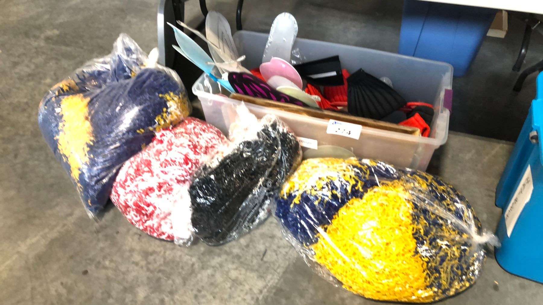 BIN OF FAIRY WINGS AND CHEERLEADER POM POMS