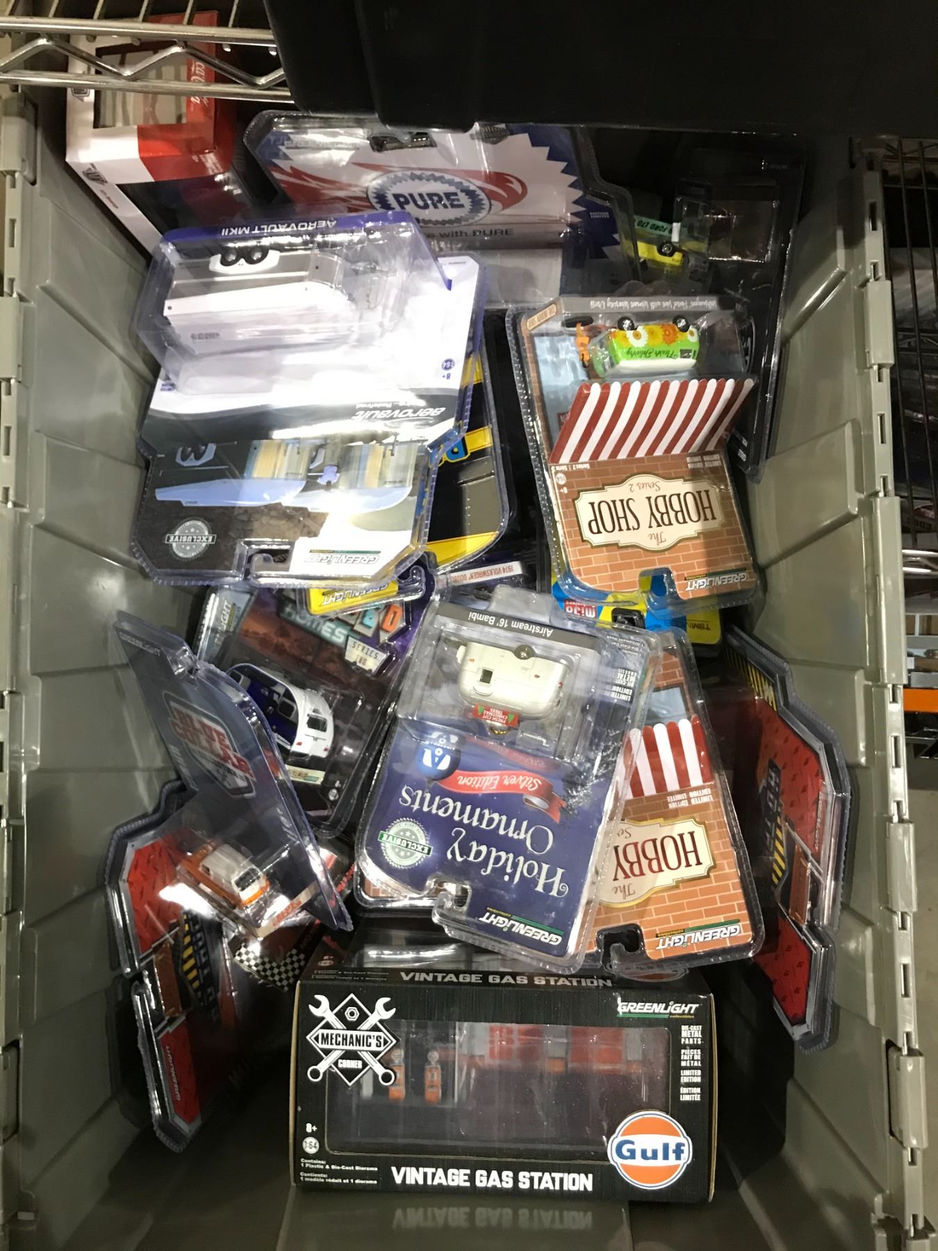 BIN OF GREENLIGHT & ASSORTED MODEL CARS (BIN NOT INCLUDED)