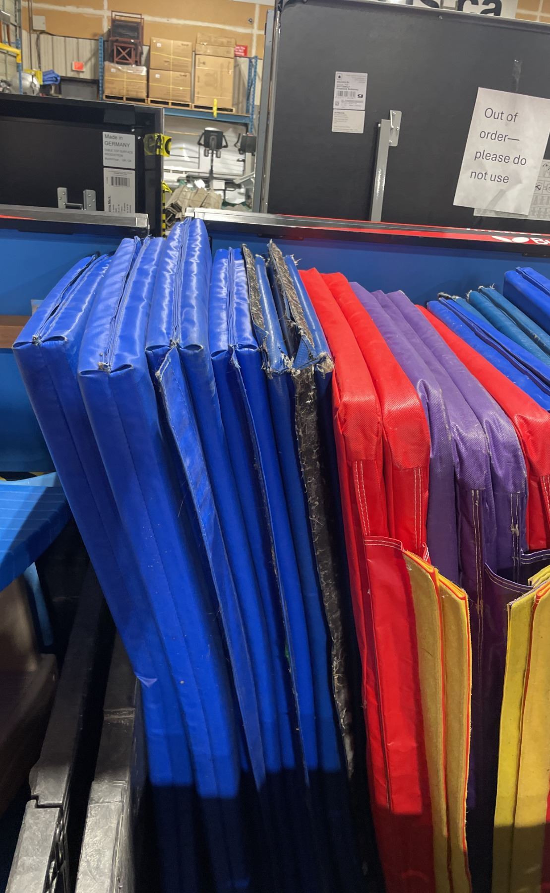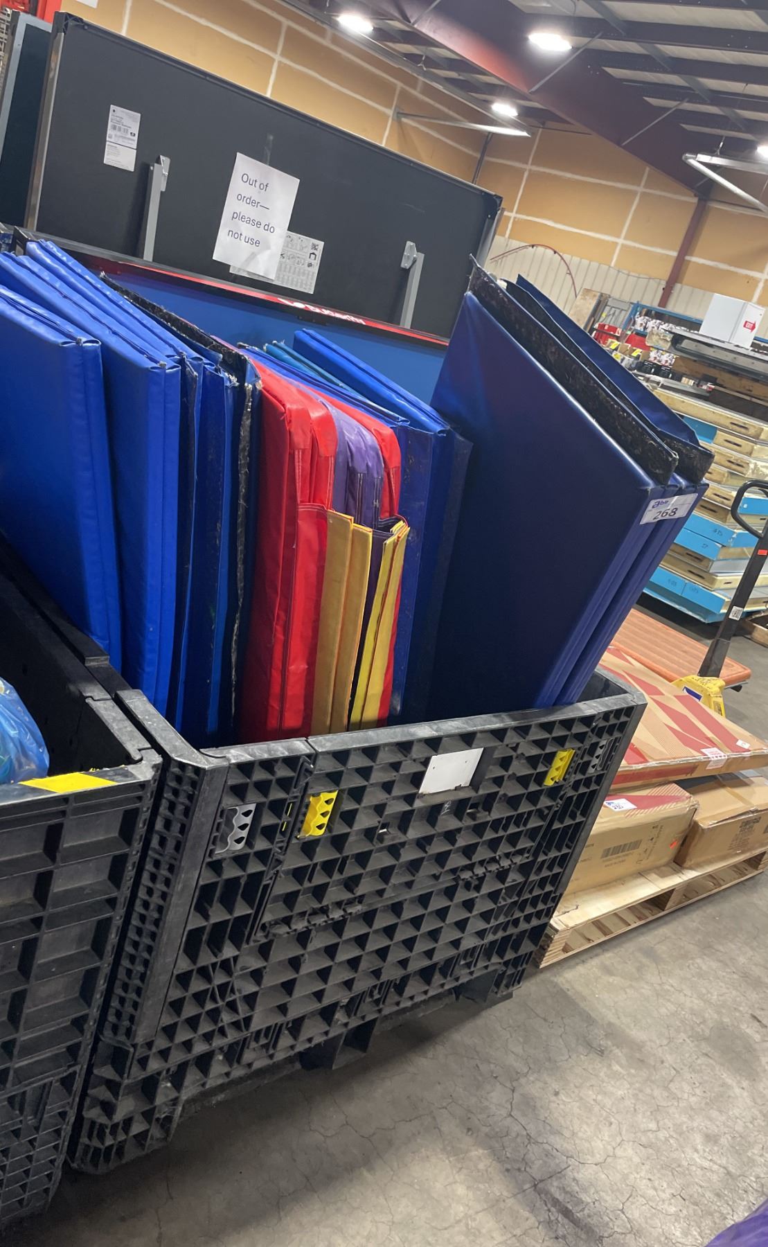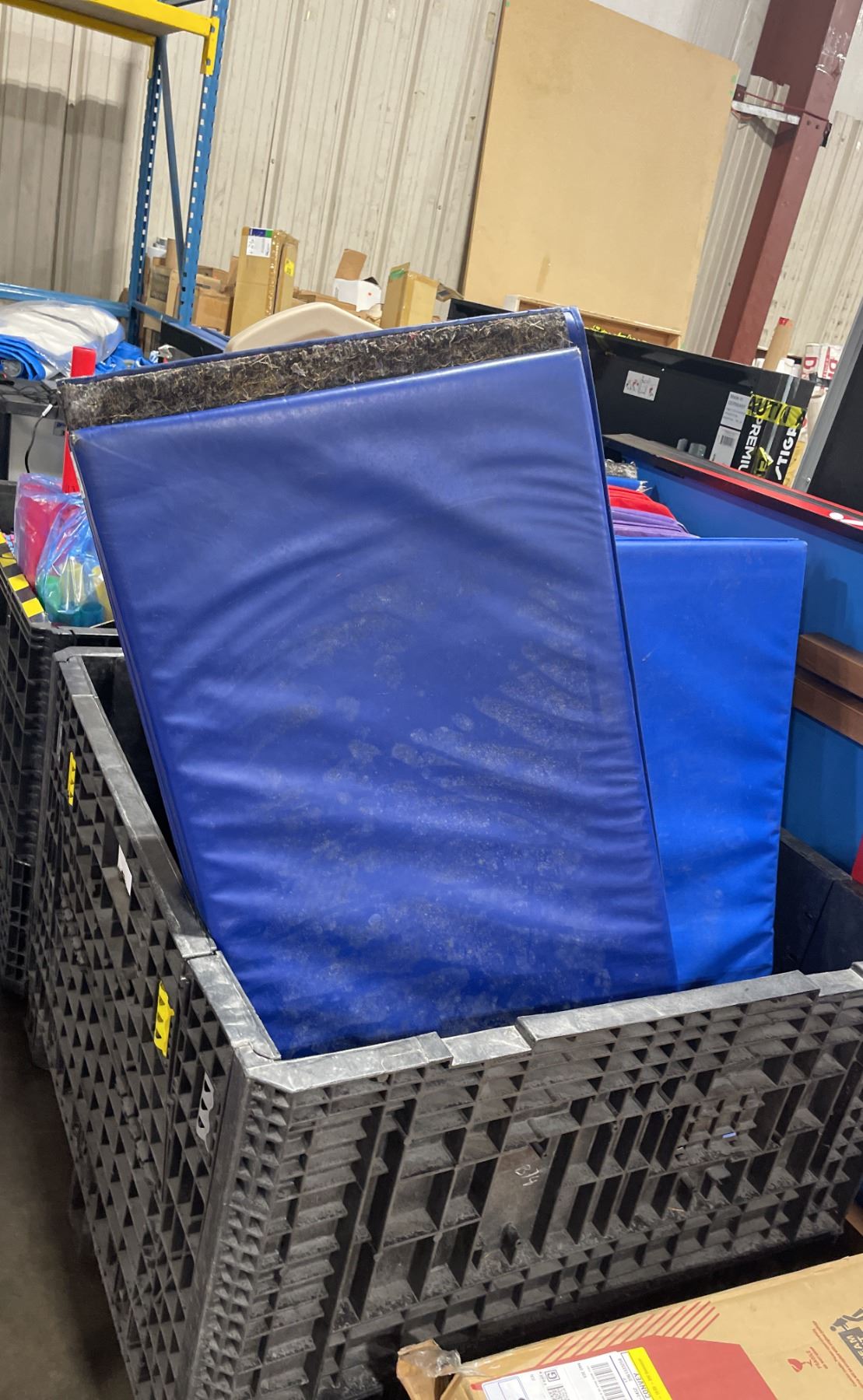 BIN OF GYM MATS, VARIOUS SHAPES AND SIZES *BIN NOT INCLUDED*