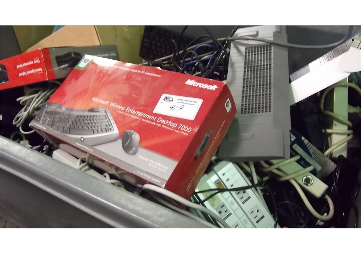 BIN OF MISC. ELECTRONICS AND CABLES (AND BIN NO GO)