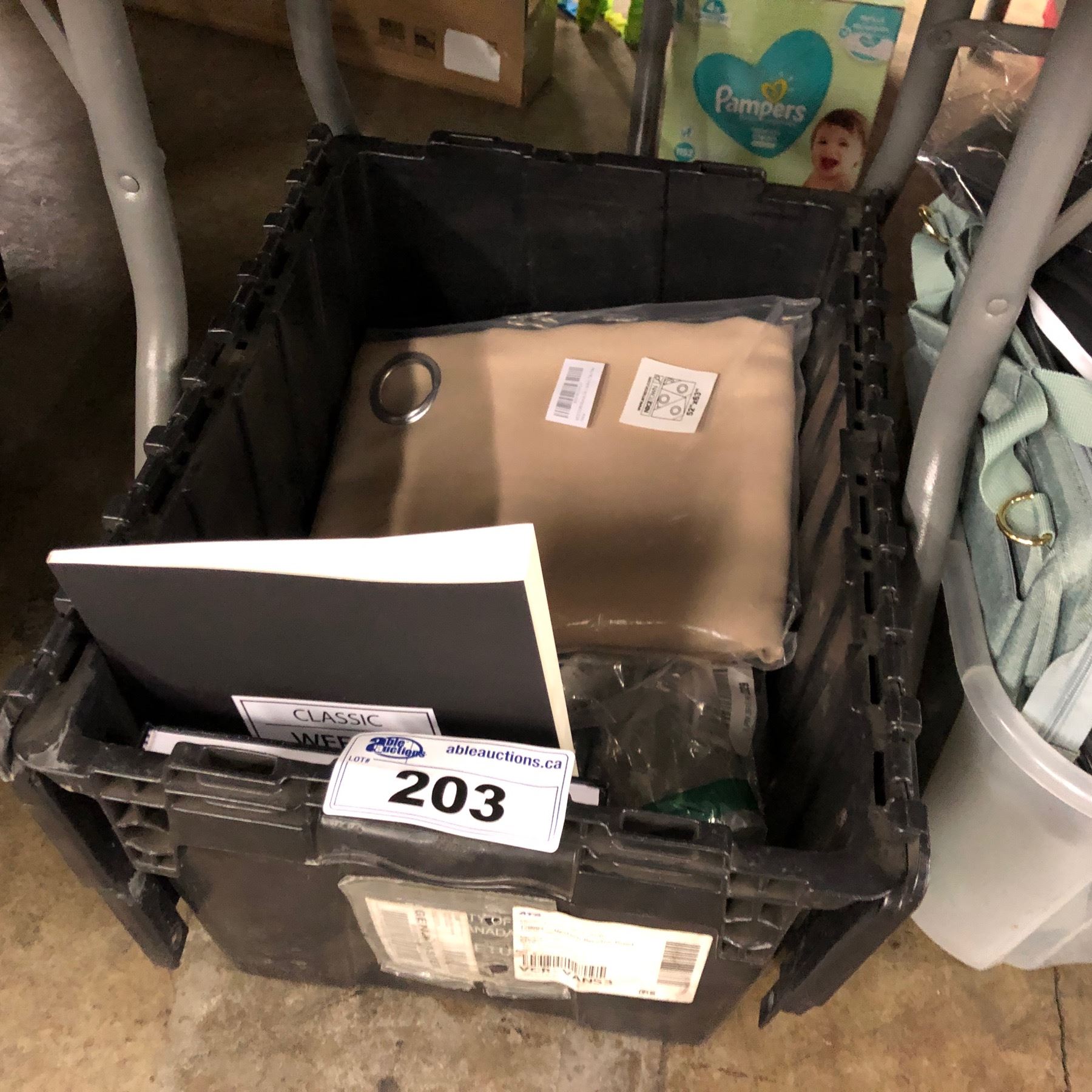 BIN OF MISC SMALL HOUSEHOLD ITEMS (BIN NOT INCLUDED)
