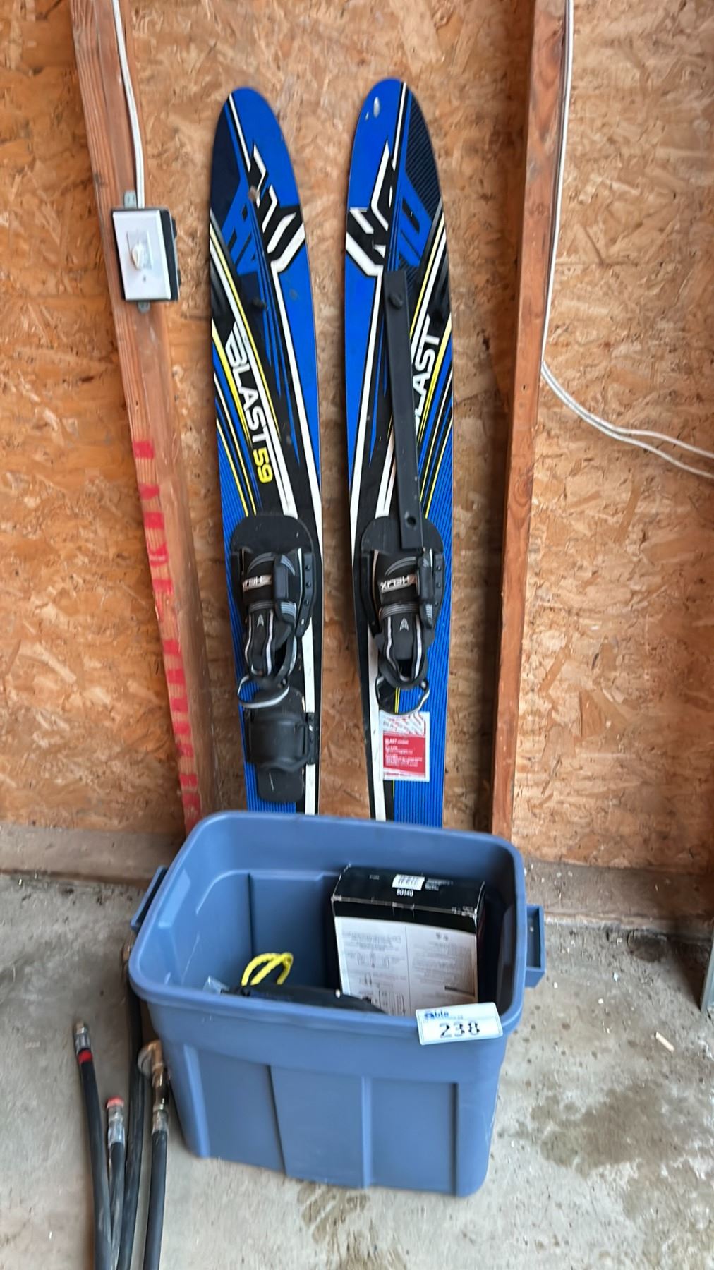 BIN OF ROPE, SURGE PROTECTOR, SKI HANDLE AND SKIIS
