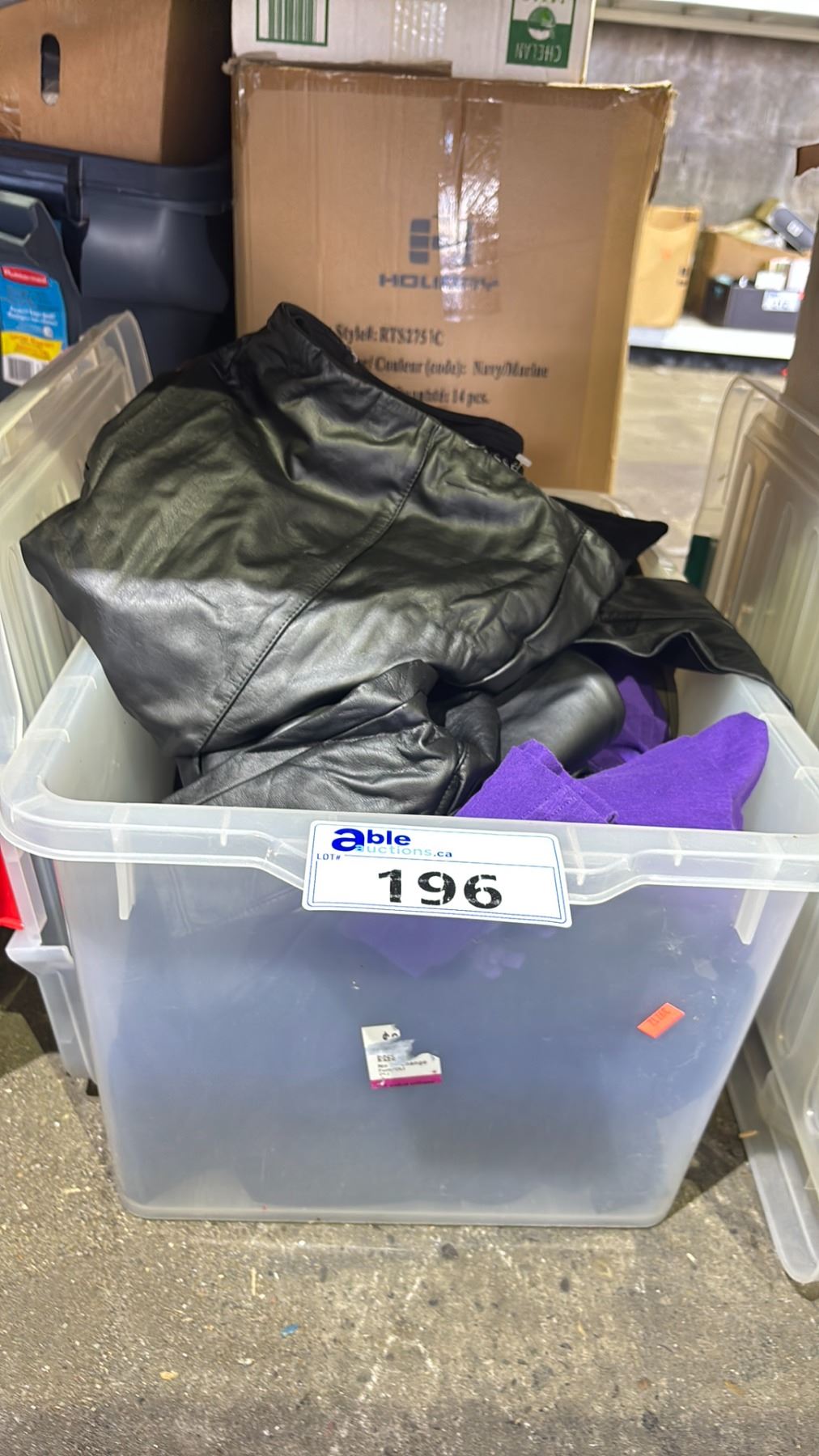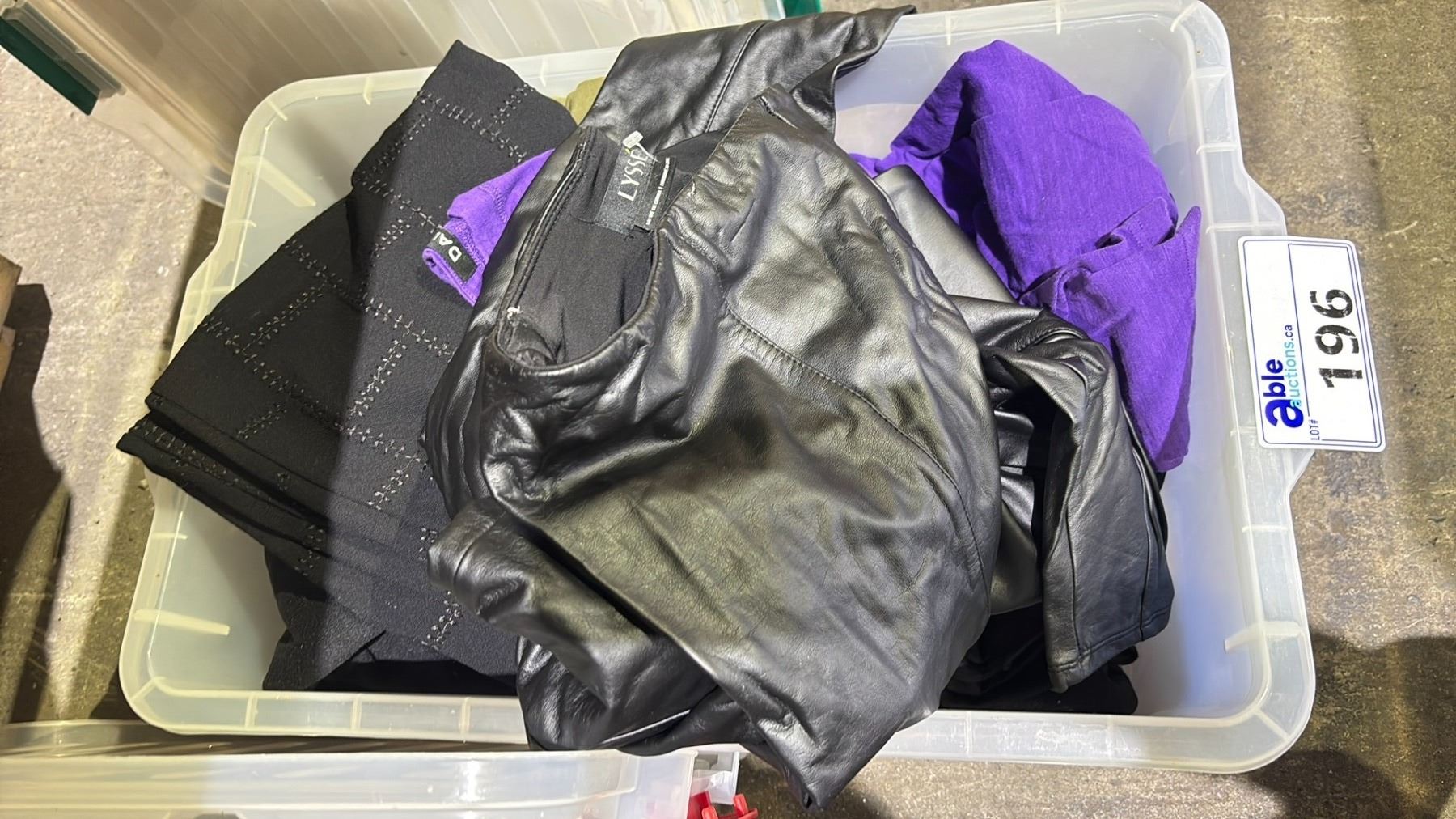 BIN OF VARIOUS STYLES & SIZES OF WOMENS CLOTHES, MOST L-XL