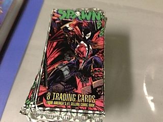 BINDER LARGE COLLECTION OF SPAWN TRADING CARDS, 22 PACKS UNOPENED SPAWN TRADING CARDS, DIAMOND EXCLUSIVE 50TH ISSUE SPAWN ULTRA ACTION FIGURE, MISC CONTAINERS OF SPAWN TRADING CARDS