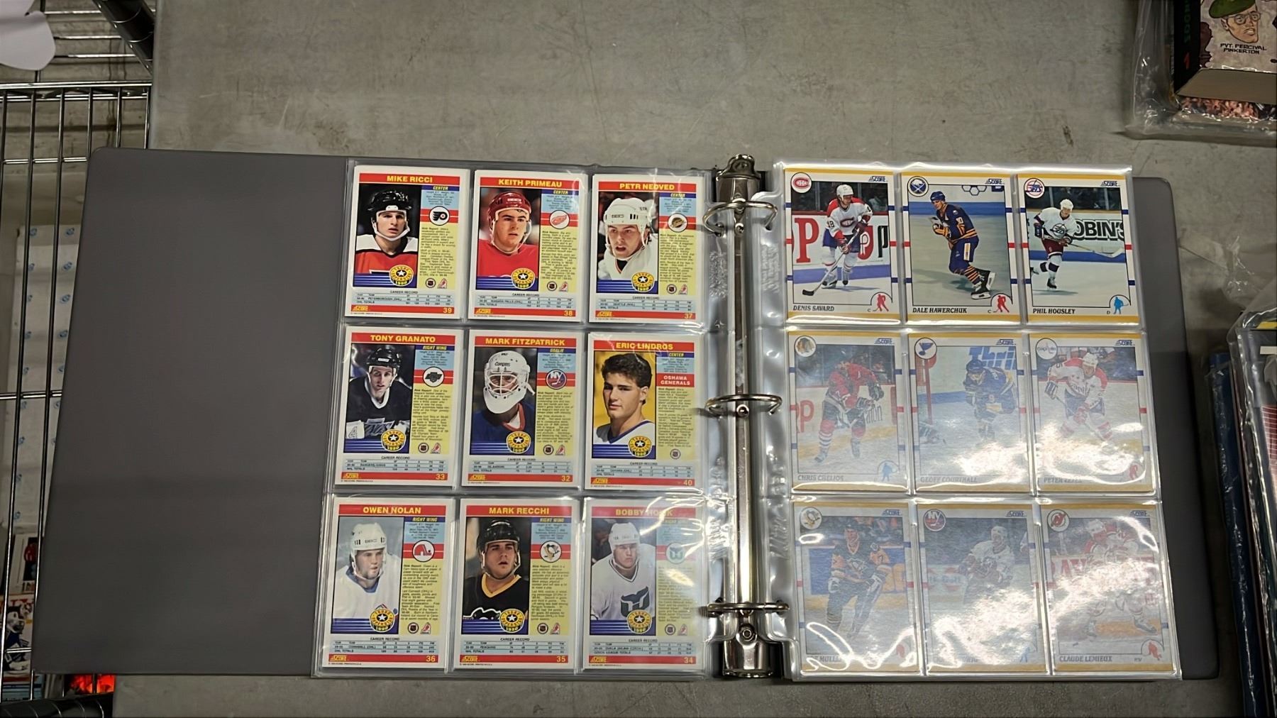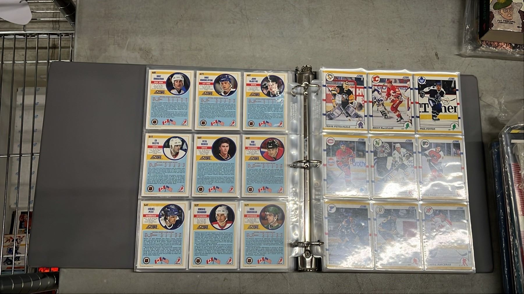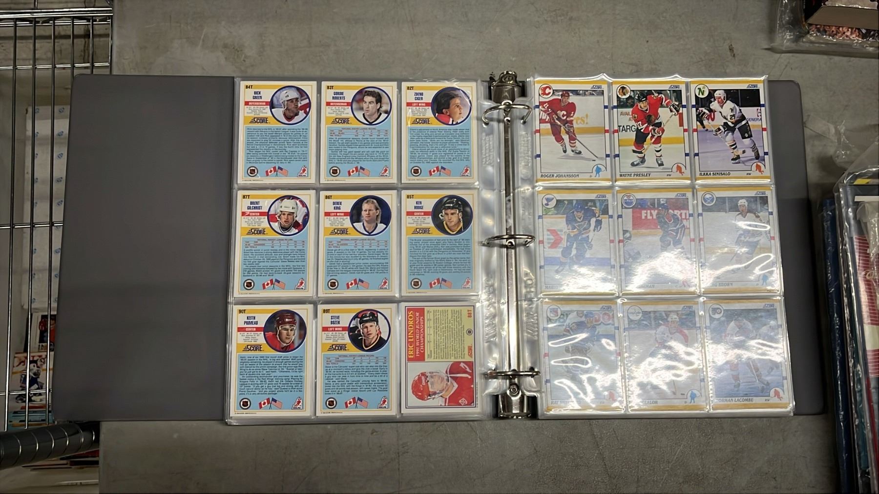 BINDER OF ASSORTED 1990 & 1991 SCORE & UPPER DECK HOCKEY CARDS