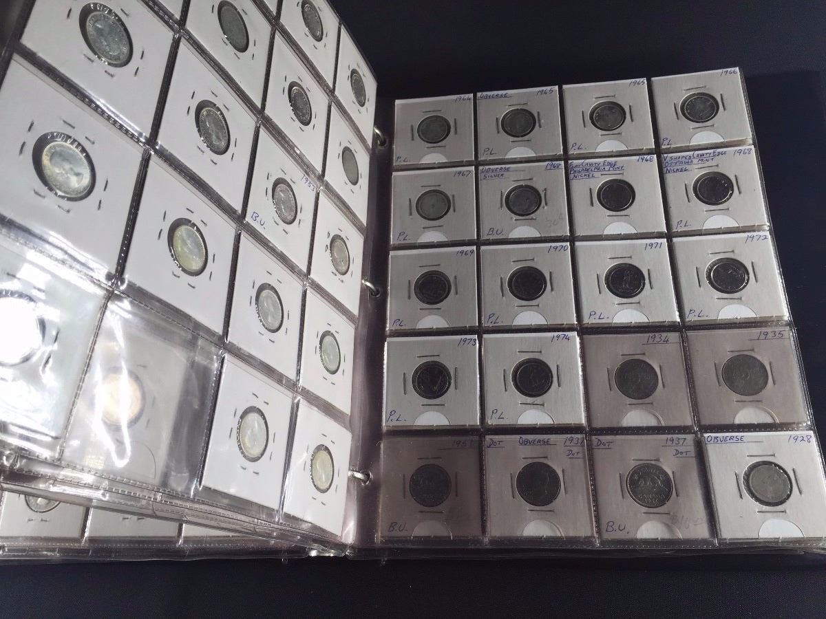 BINDER OF CANADIAN COINS, INCL. SILVER DOLLARS, HALF DOLLARS, QUARTERS AND MORE. A CHOICE DEALERS
