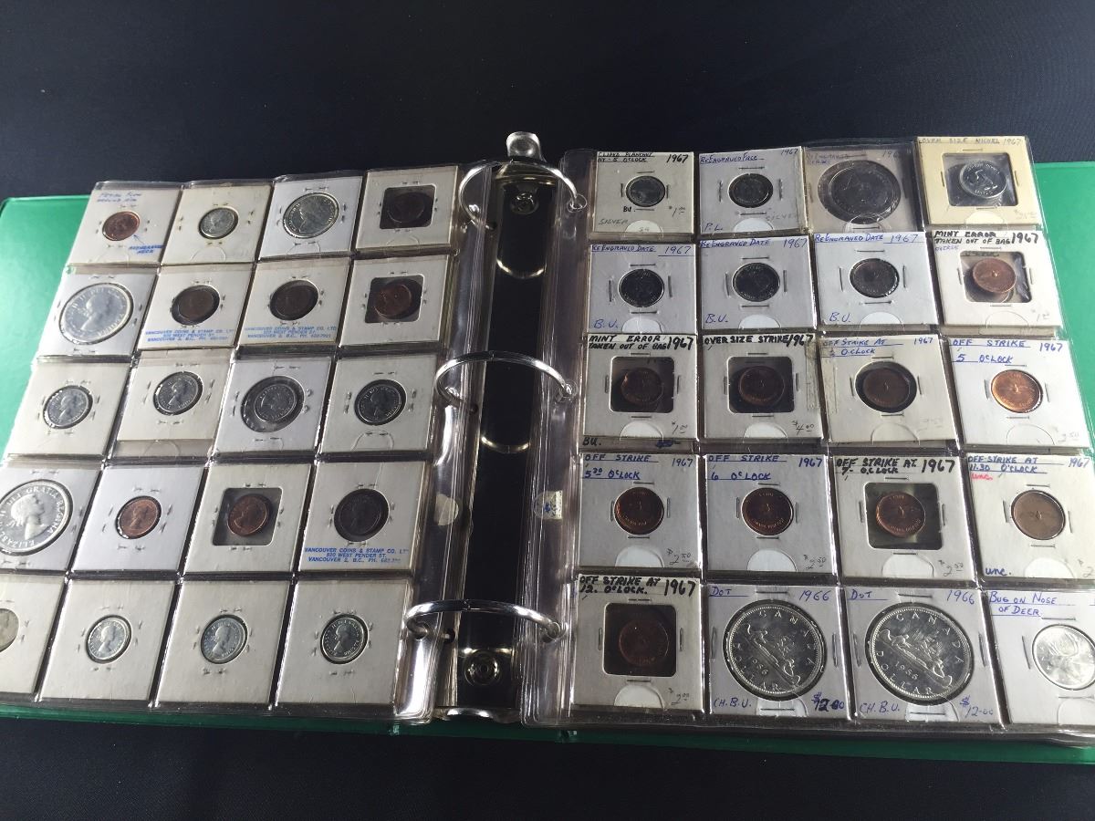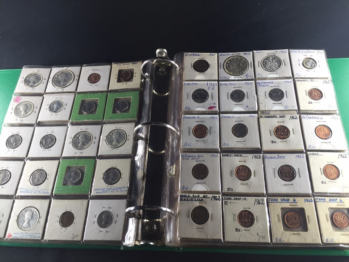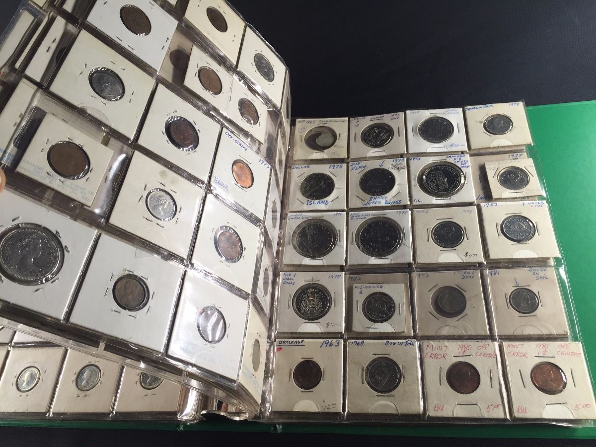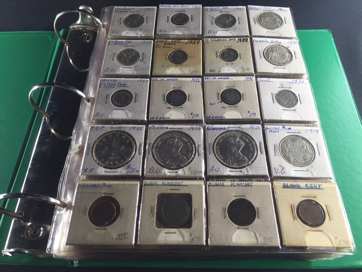 BINDER OF CANADIAN COINS, INCL. SILVER DOLLARS, HALF DOLLARS, QUARTERS AND MORE. A CHOICE DEALERS LOT!