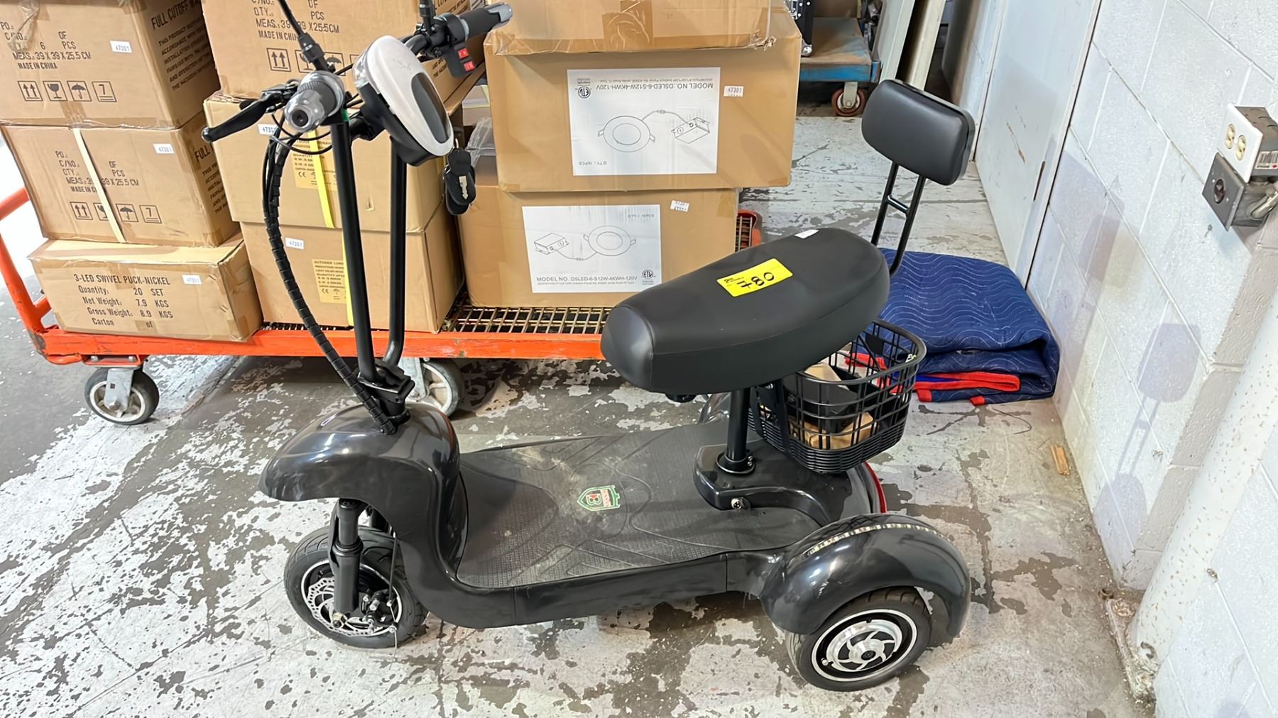 BINRAY BLACK 3 WHEEL ELECTRIC SCOOTER WITH KEYS *WITH CHARGER/DOES NOT RUN/PARTS & REPAIR*