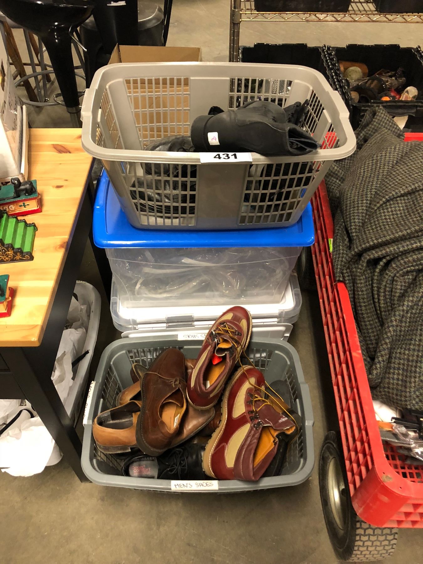 BINS OF ASSORTED SHOES & BAGS