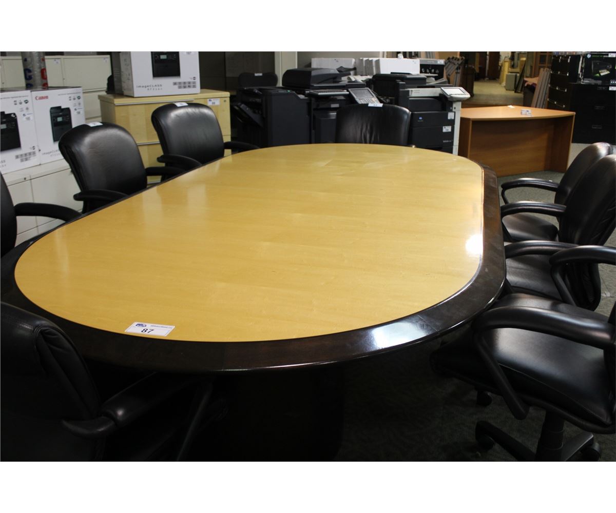 BIRDS EYE MAPLE INLAY 10'X5' RACE TRACK BOARDROOM TABLE