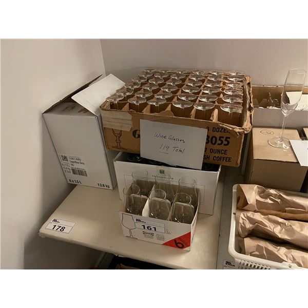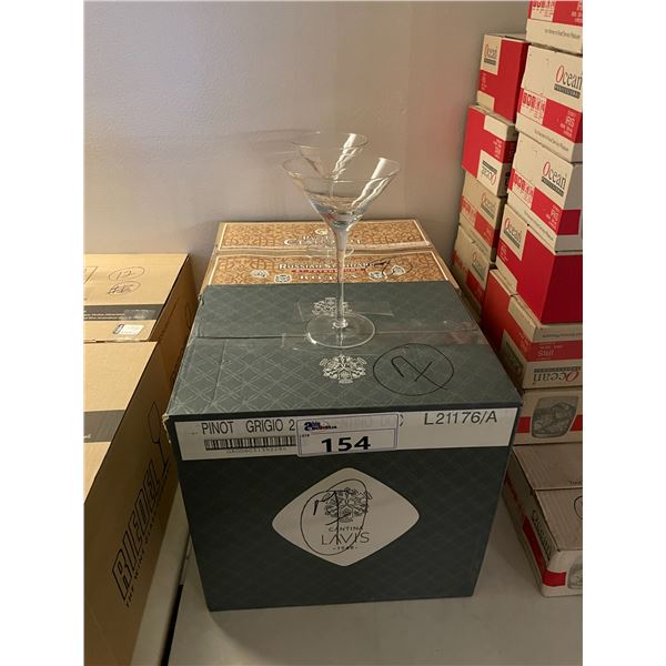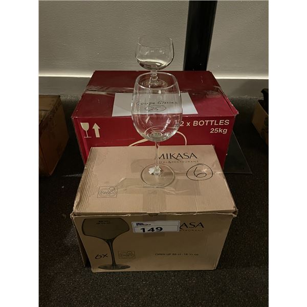 BOX OF WHITE WINE STEM GLASSES & BOX OF 25 STEM COUPE GLASSES