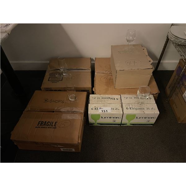 6 BOXES OF ASSORTED BAR GLASSWARE & WINE GLASSES
