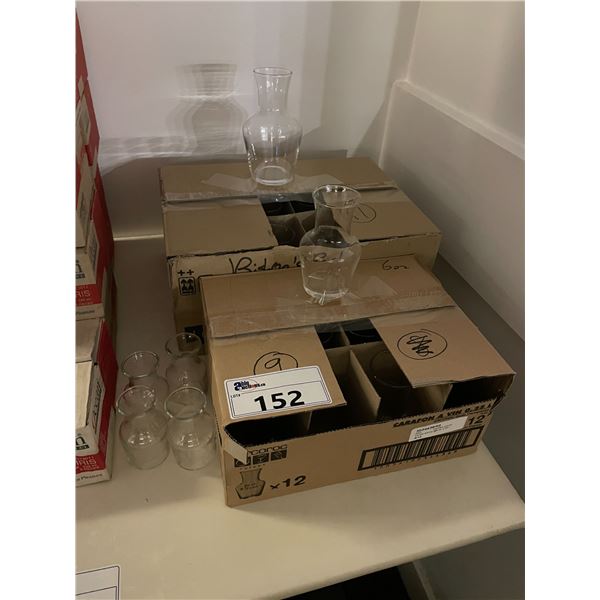 2 BOXES OF ASSORTED SIZED DECANTERS