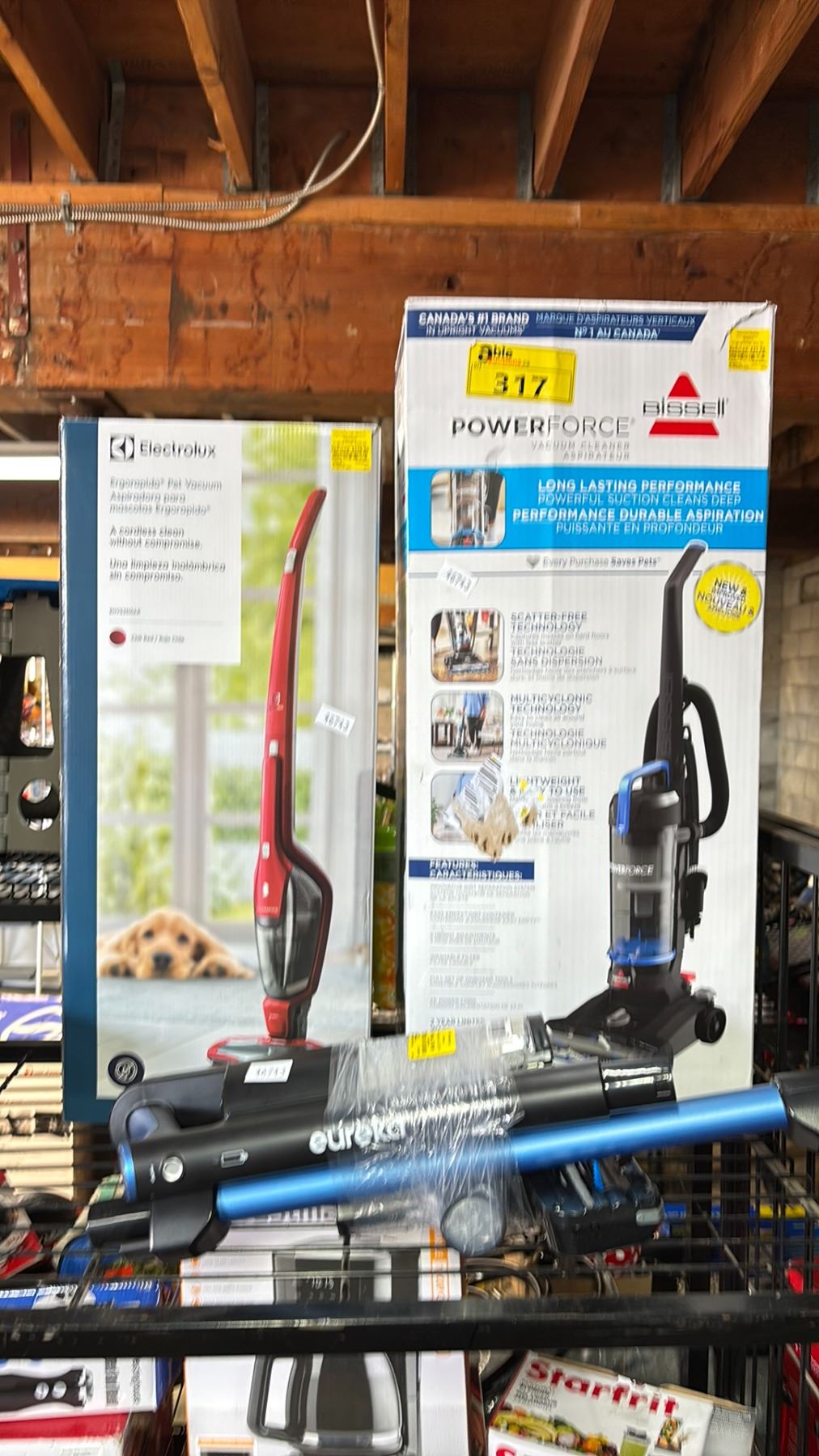 BISSELL POWER FORCE VACUUM CLEANER, ELECTROLUS ERGORAPIDO PET VACUUM AND EUREKA STICK VAC