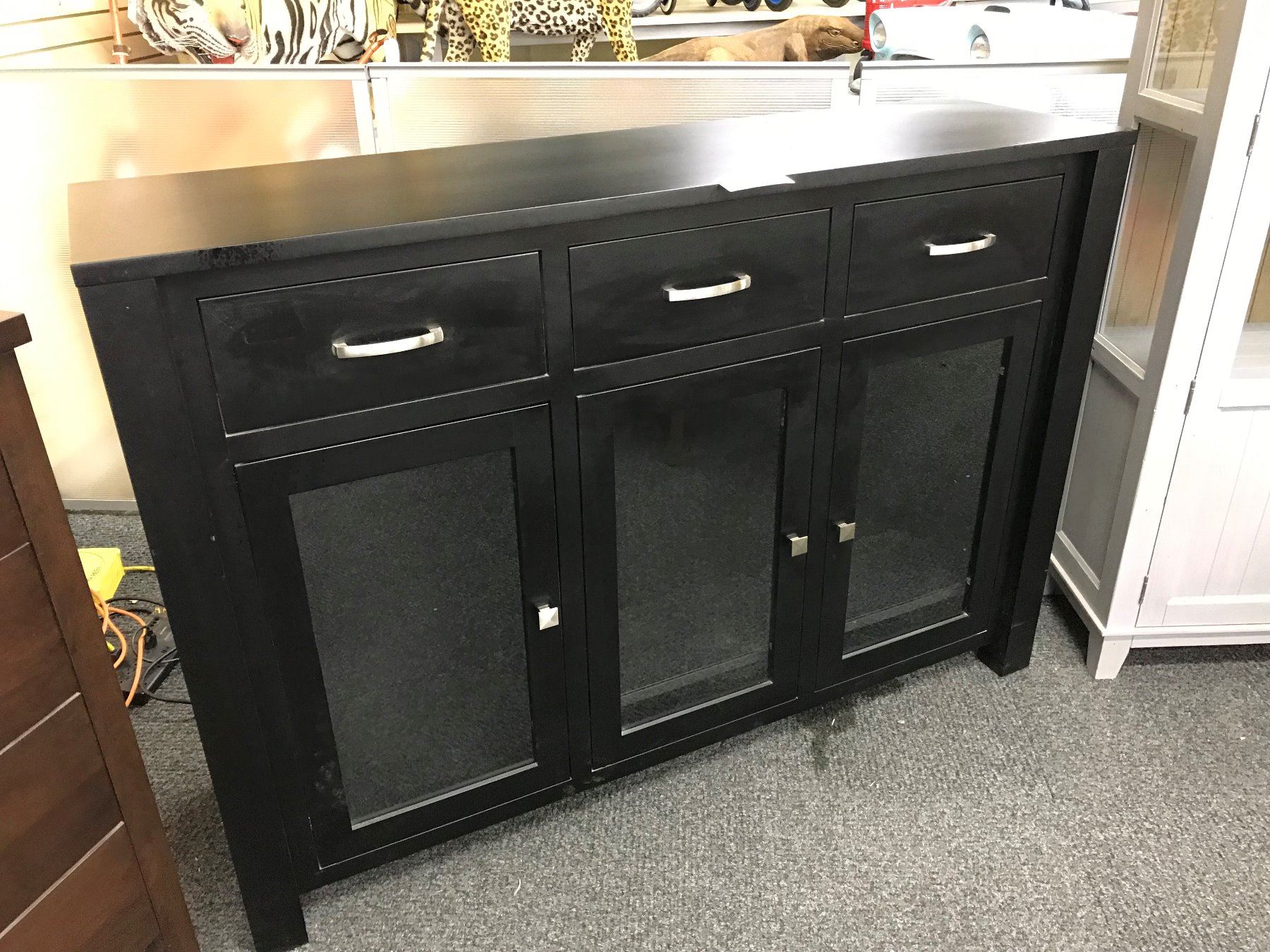 BLACK 3 DRAWER GLASS FRONT DINING CHEST