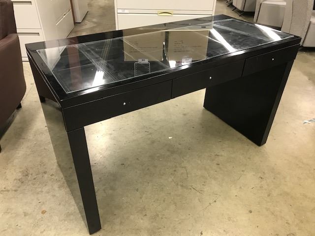 BLACK 3 DRAWER GLASS TOP VANITY, 51" WIDE X 23.5" DEEP X 30" TALL, MIRROR NOT INCLUDED