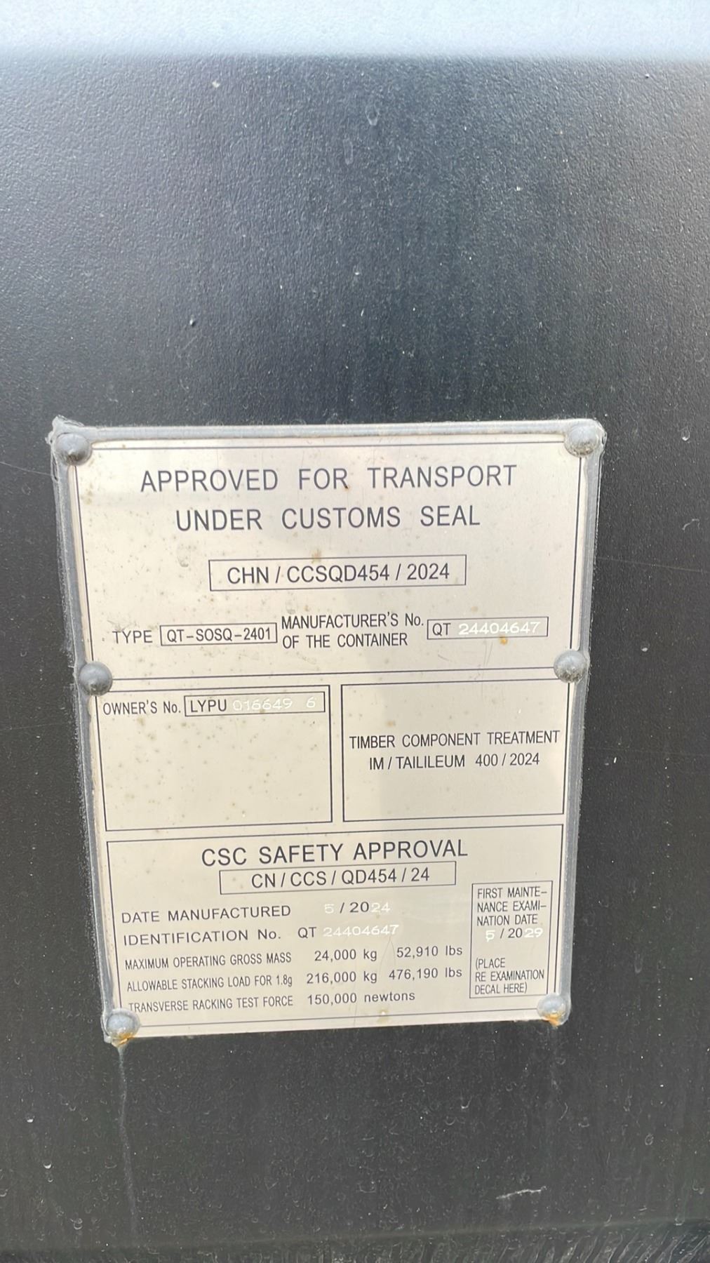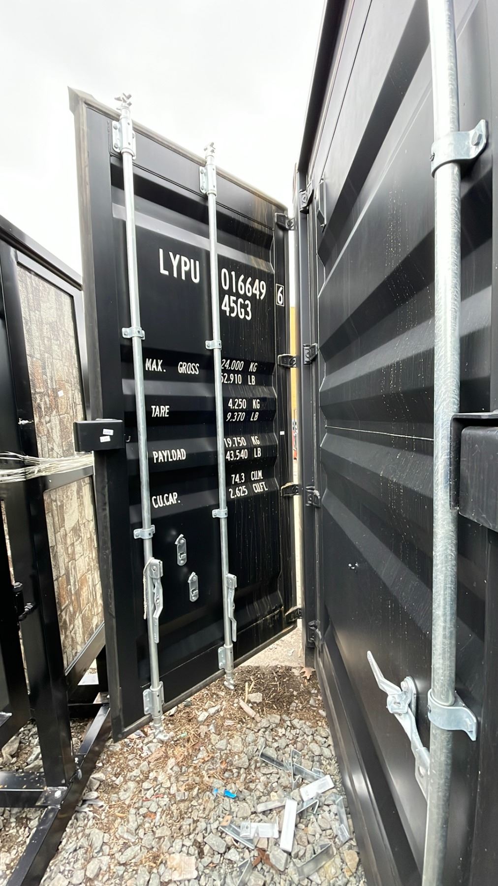 BLACK 40' 52,910 MAX CAPACITY INDUSTRIAL TRANSPORT CONTAINER WITH 3 DUAL SWING SIDE DOORS / DUAL SWING REAR DOORS WITH CAM LOCKS 40'L X 96"W 114"H - LYPU 016649 45G3 (CRANE TRUCK/HIAB REQUIRED - LAST DAY REMOVAL - FRIDAY ONLY) ** CONTENTS NOT INCLUDED **