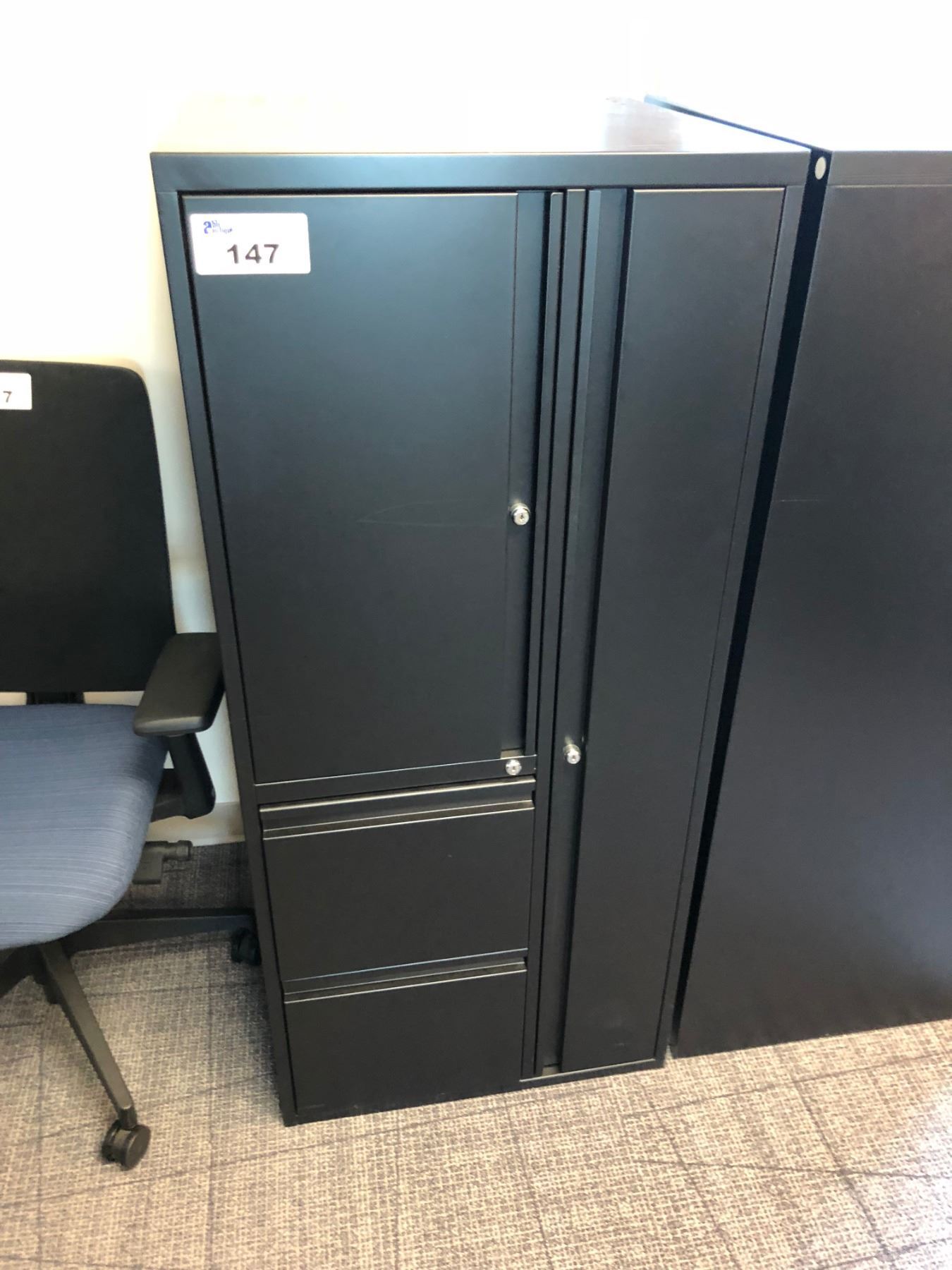 BLACK 5' 4 COMPARTMENT MULTI DOOR STORAGE CABINET WITH COAT HANGER