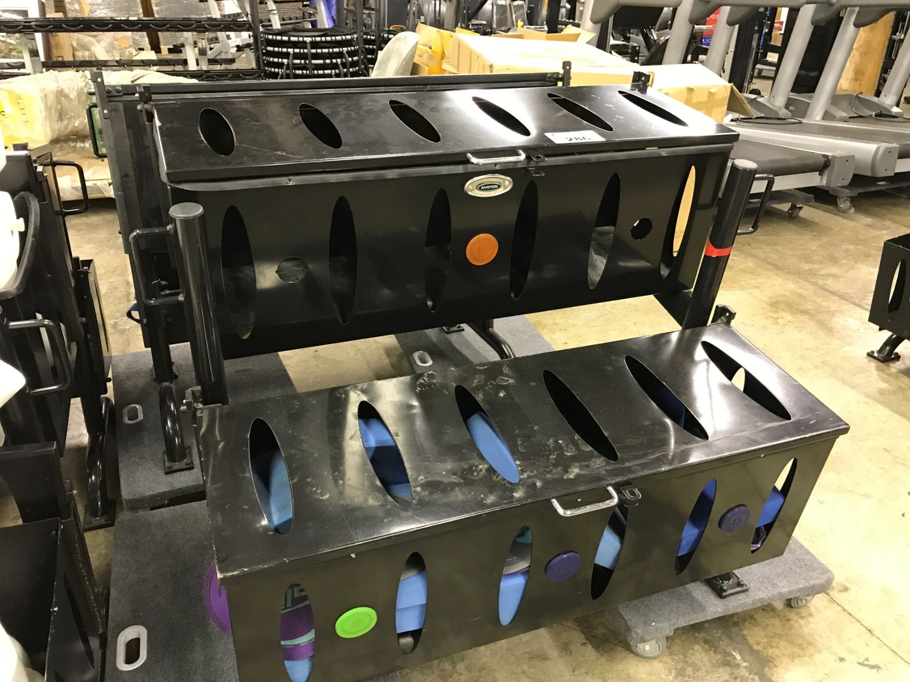BLACK 6 COMPARTMENT STORAGE UNIT WITH CONTENTS