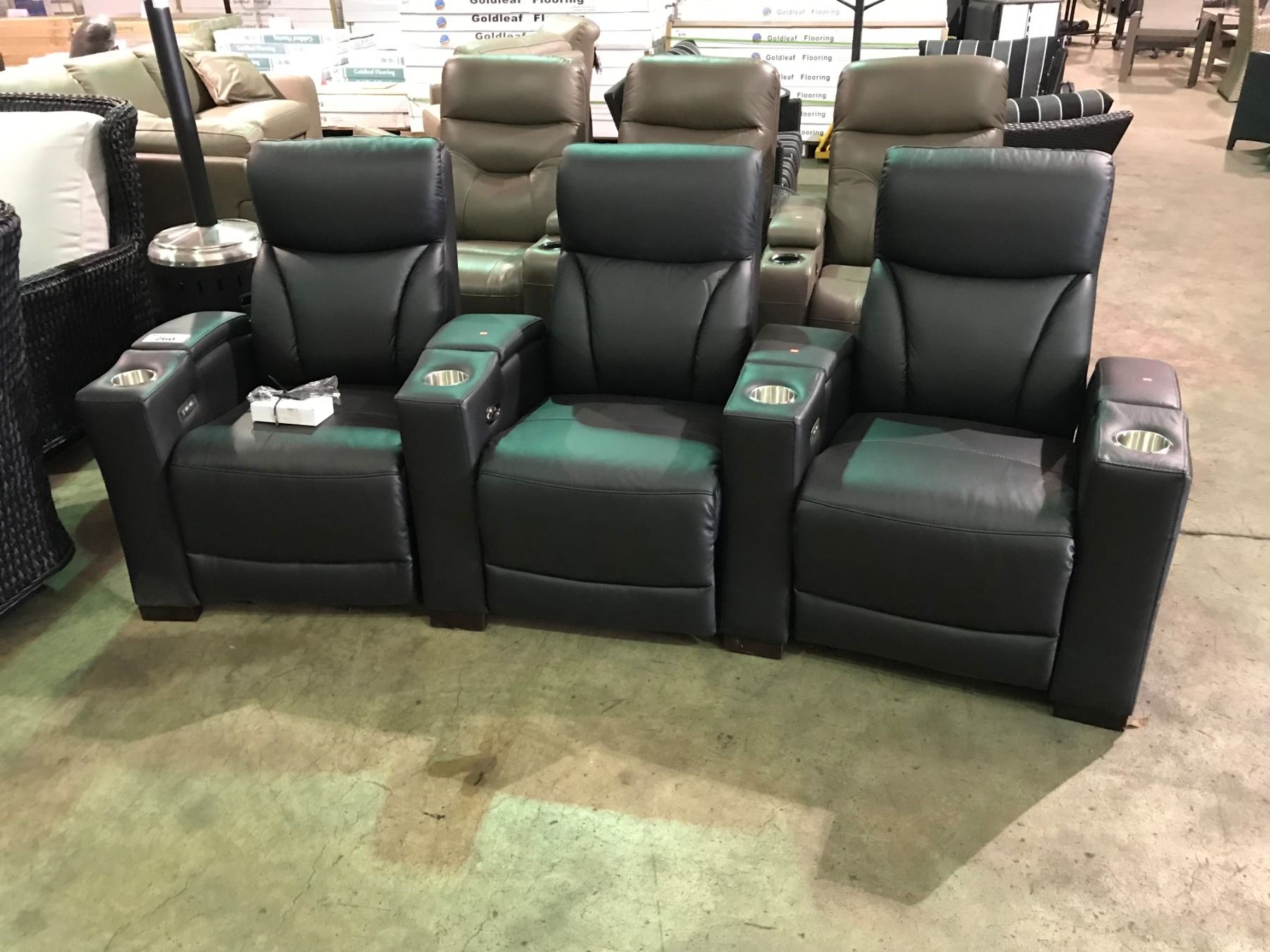 BLACK 9770 LEATHER 3 PCS POWERED RECLINING THEATER SECTIONAL