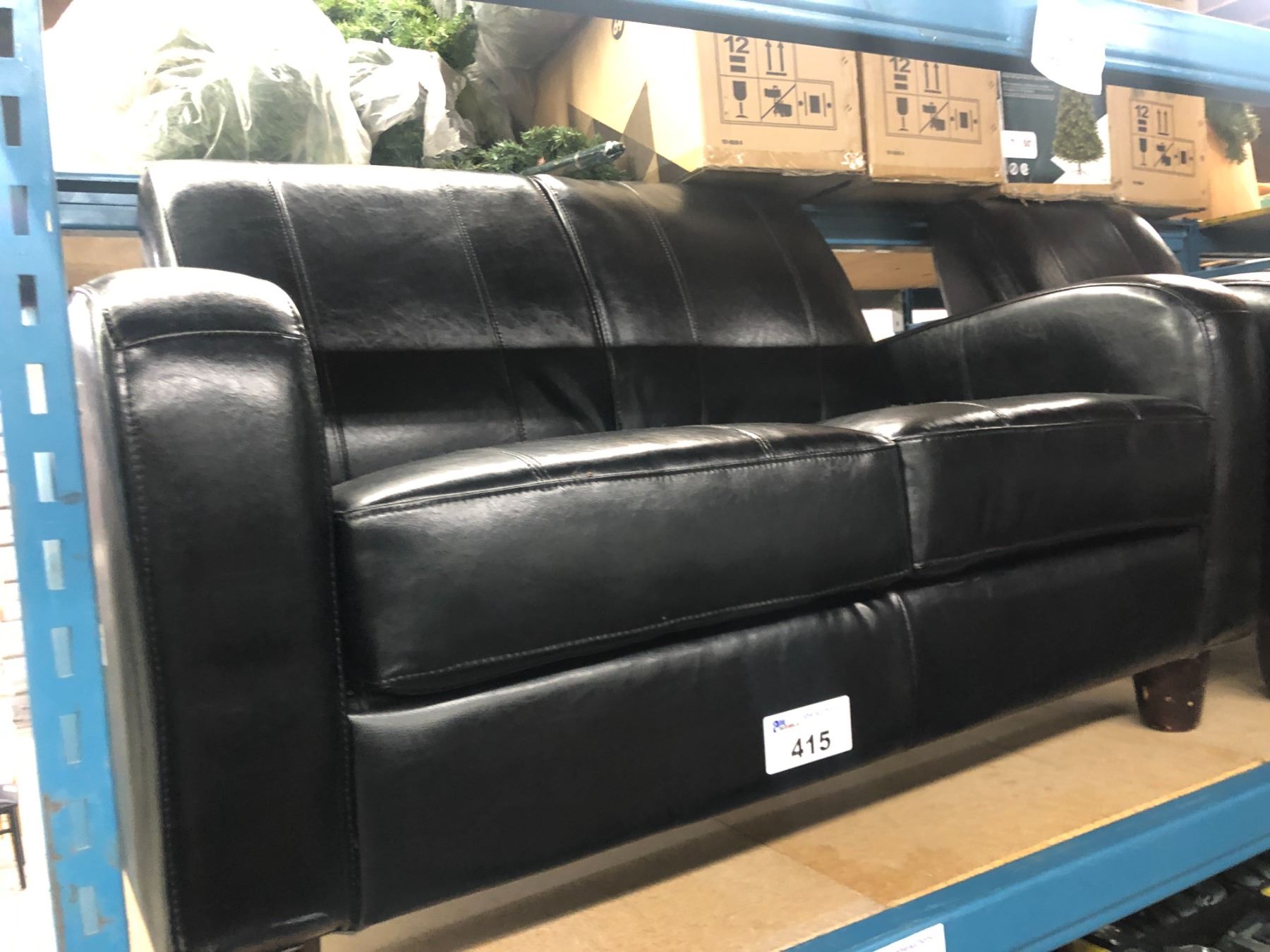 BLACK AND BROWN WOOD ACCENT LOVE SEAT