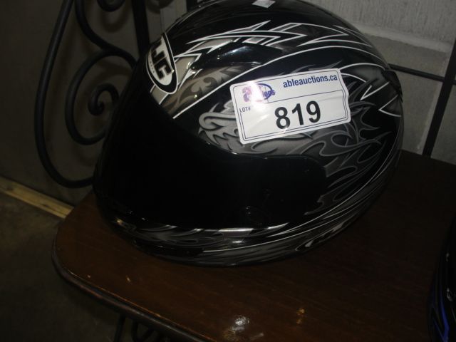 BLACK AND GREY HJC FULL FACED MOTORCYCLE HELMET WITH VISOR