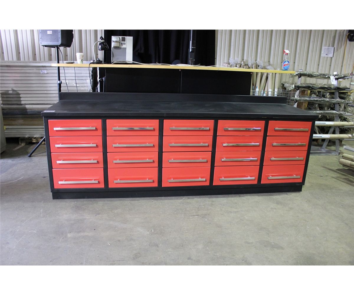 BLACK AND RED MODEL 1020WB 20 DRAWER 10' METAL WORK BENCH