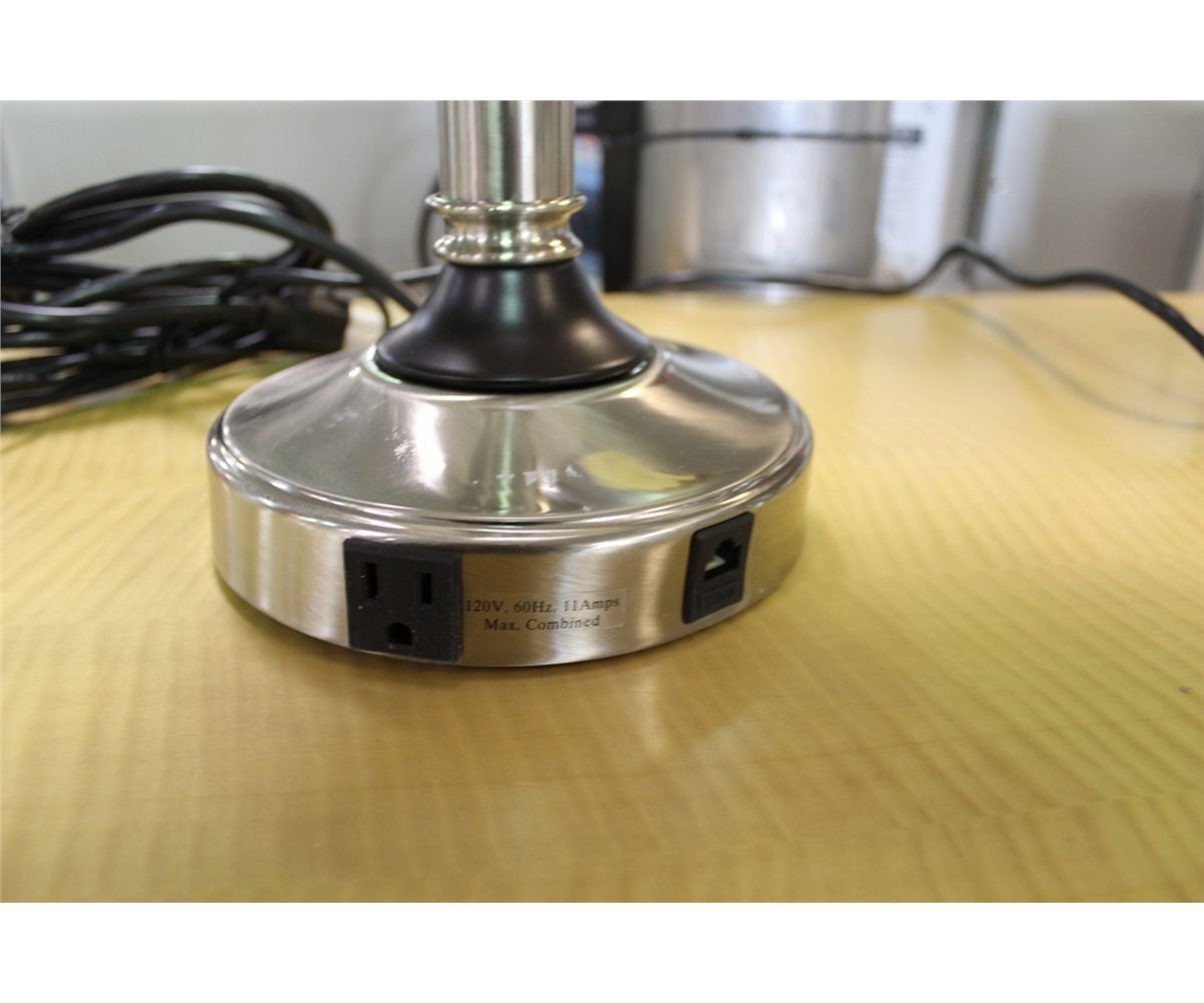 BLACK AND STAINLESS STEEL TABLE LAMP WITH DATA PORT