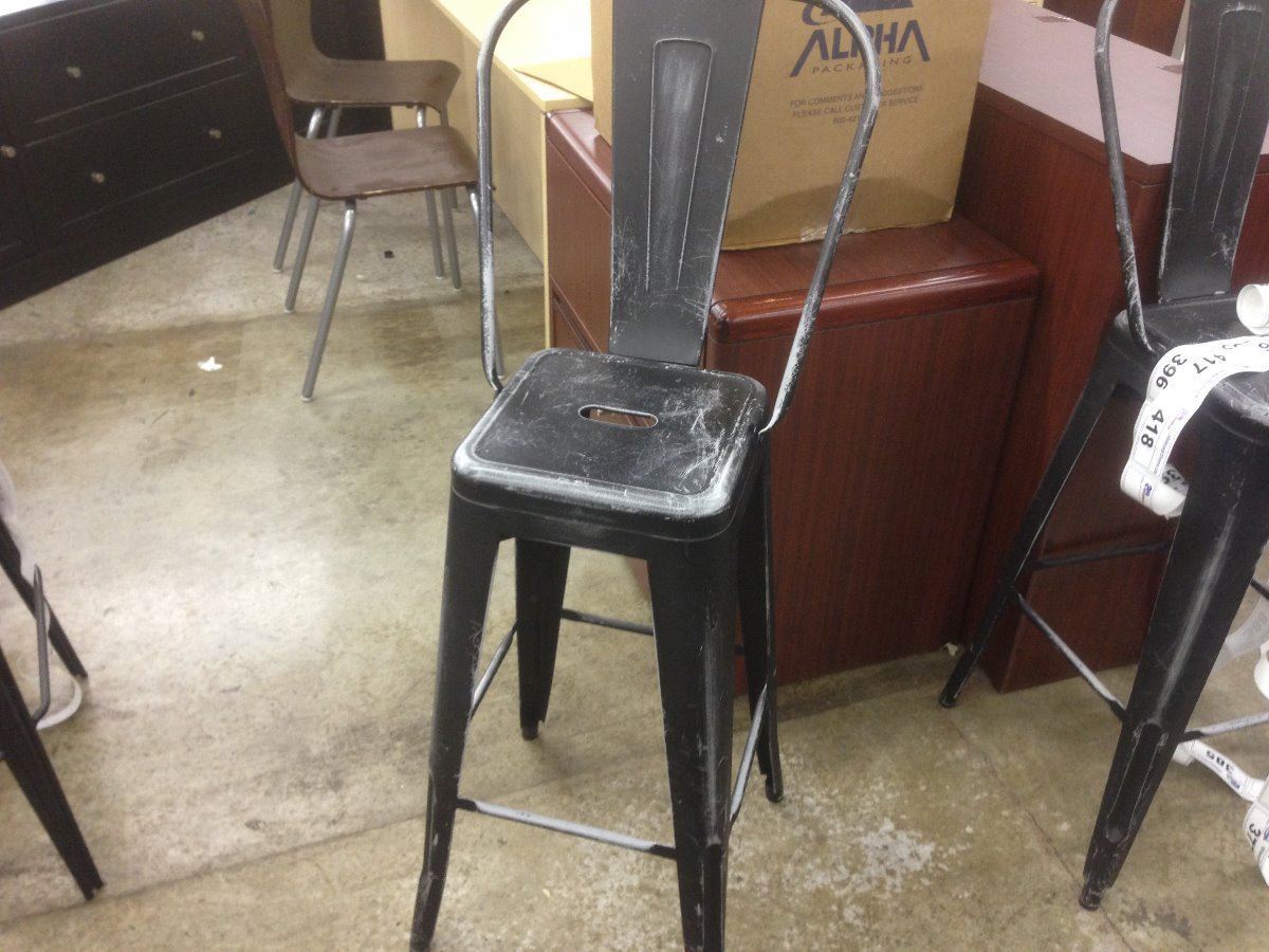BLACK BRUSHED METAL HIGH BACK BAR HEIGHT BISTRO CHAIR