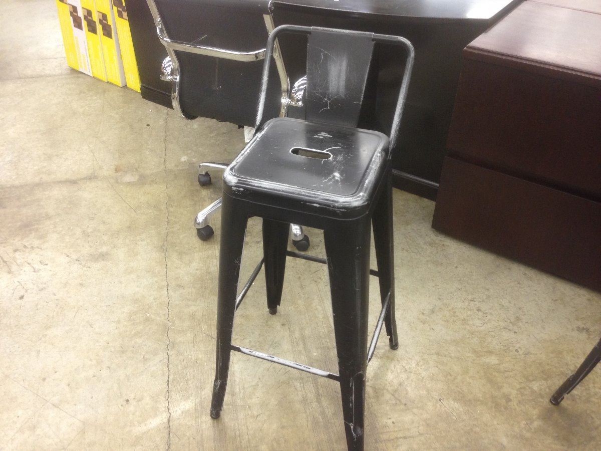 BLACK BRUSHED METAL LOW BACK BAR HEIGHT BISTRO CHAIR