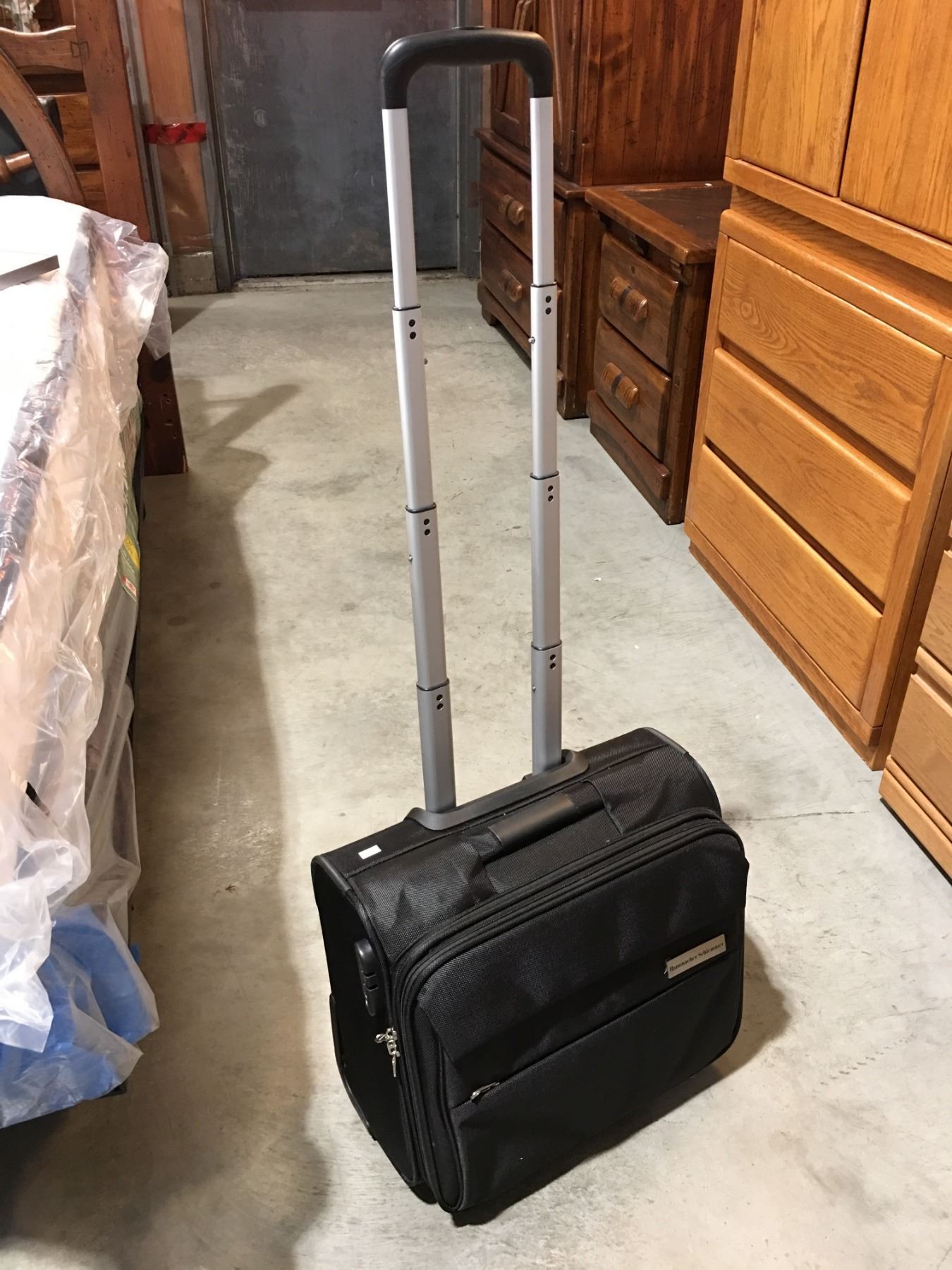 BLACK CARRY ON BAG WITH HANDLES AND WHEELS