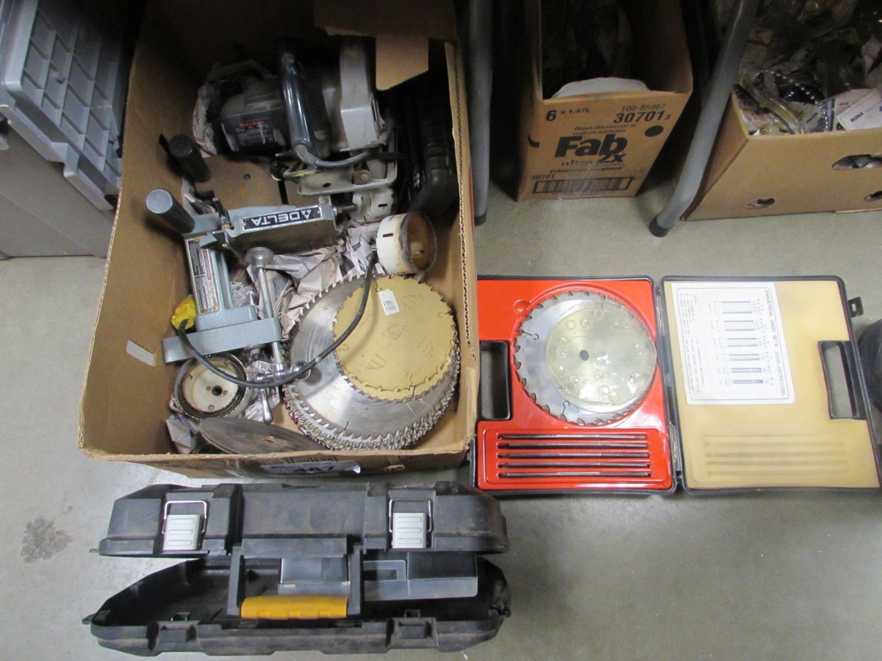 BLACK & DECKER CIRCULAR SAW, SAW BLADES, DADO BLADE SET, ASSORTED TOOLS, BLADES & MISC