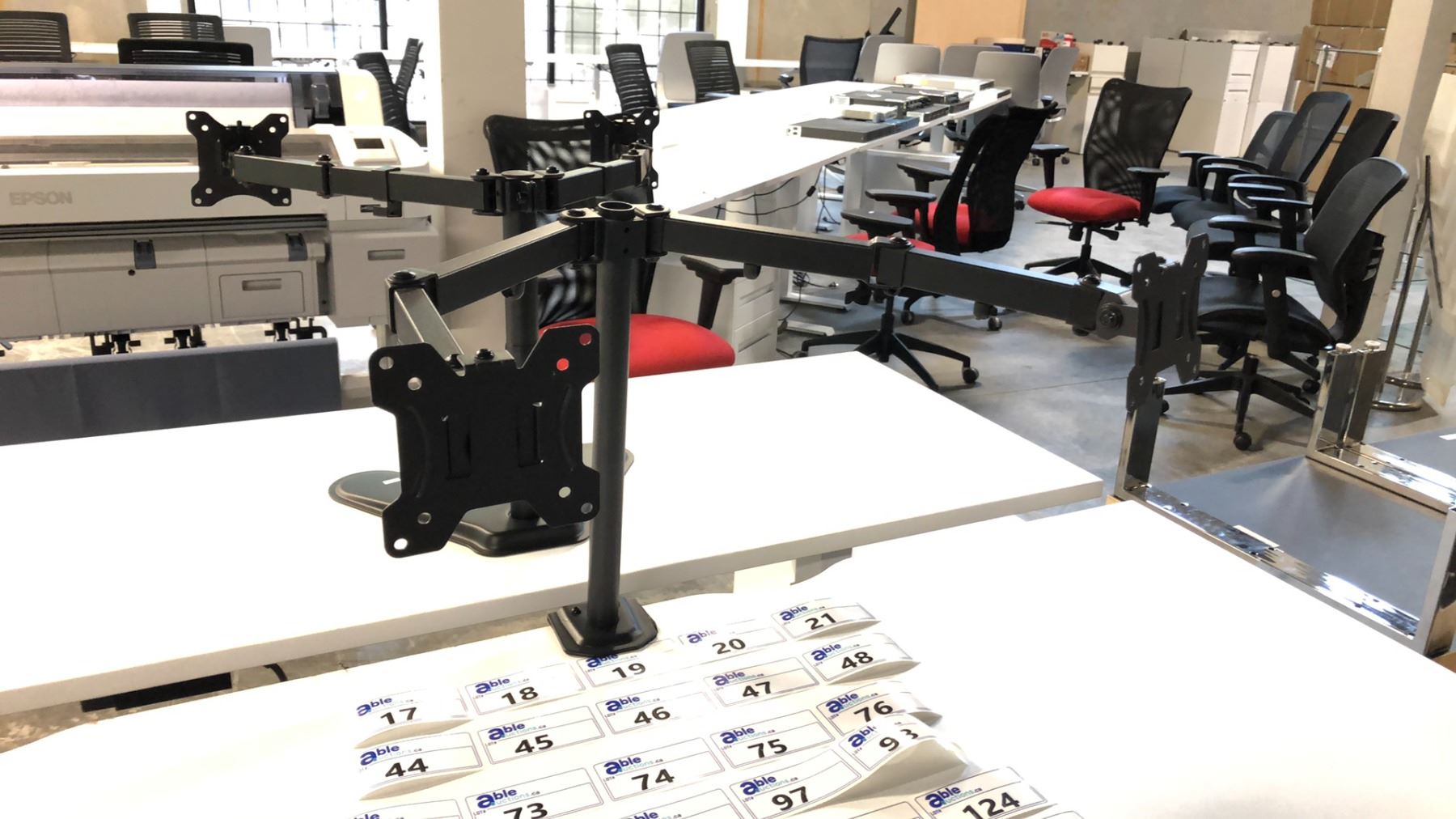 BLACK DESK MOUNTED DUAL MONITOR STAND