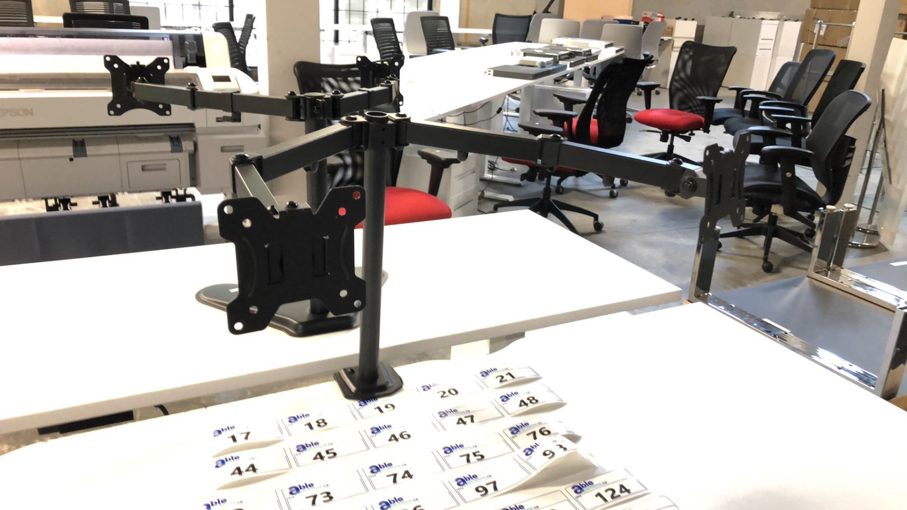 BLACK DESK MOUNTED DUAL MONITOR STAND