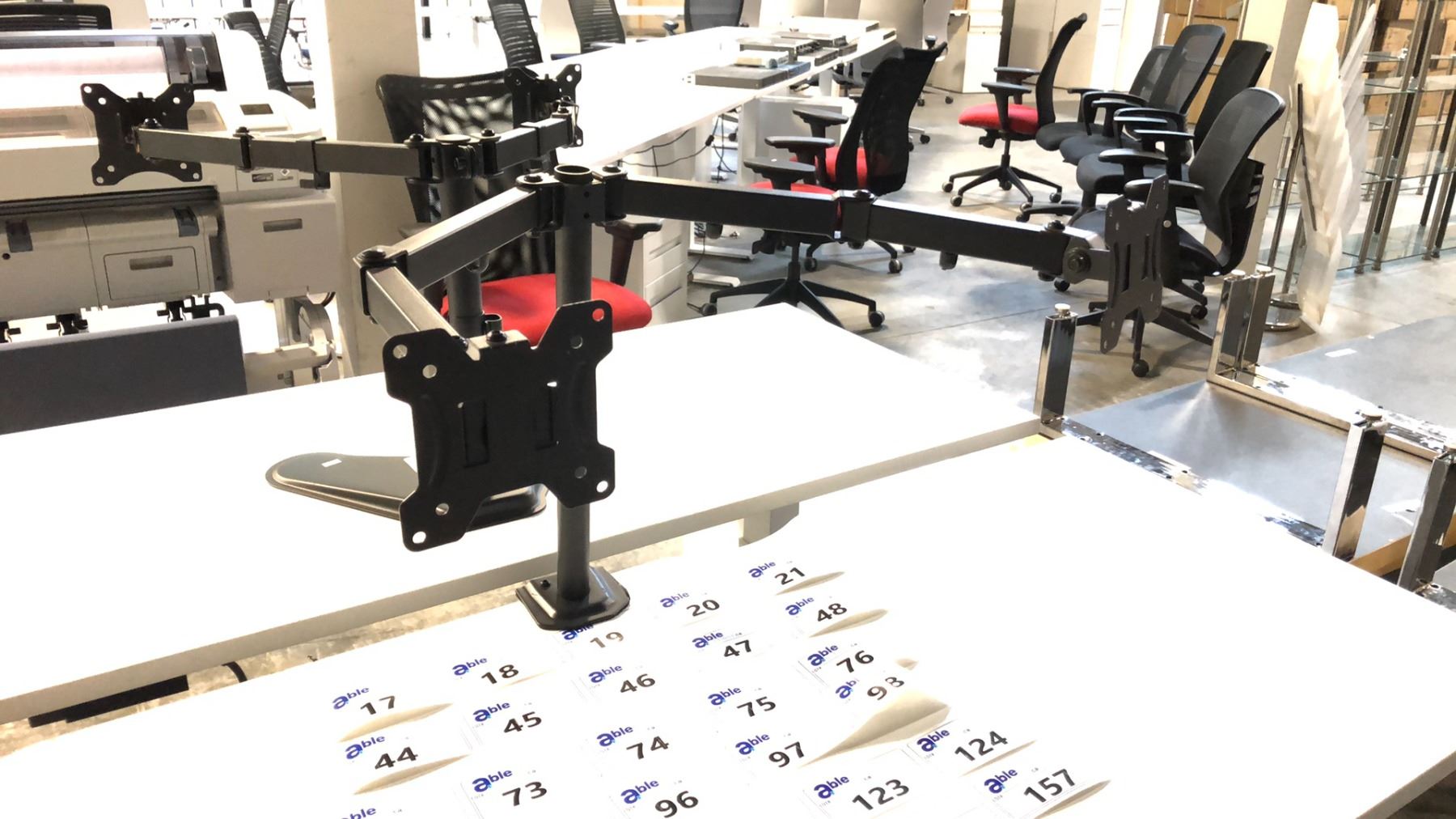 BLACK DESK MOUNTED DUAL MONITOR STAND