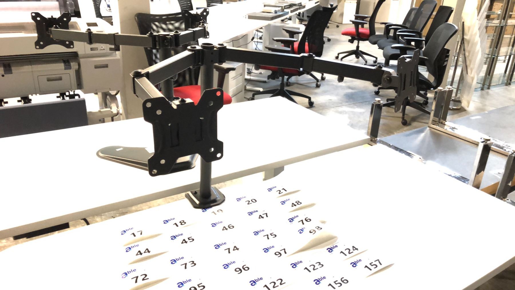 BLACK DESK MOUNTED DUAL MONITOR STAND
