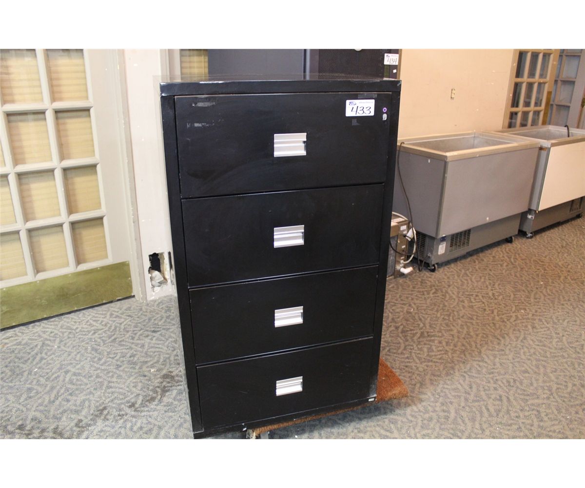 BLACK FIREPROOF 4-DRAWER LATER FILE CABINET