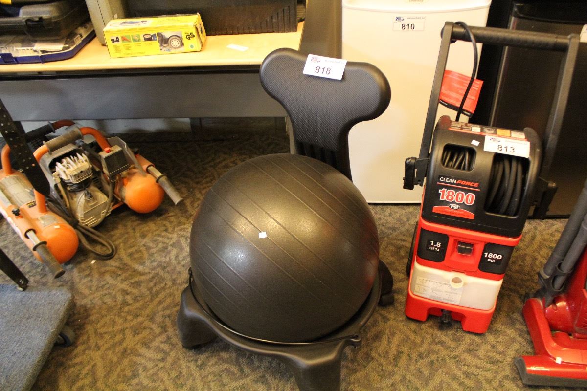 BLACK FITNESS BALL CHAIR W/ BACK REST, AND 2 PORTABLE DESK FANS