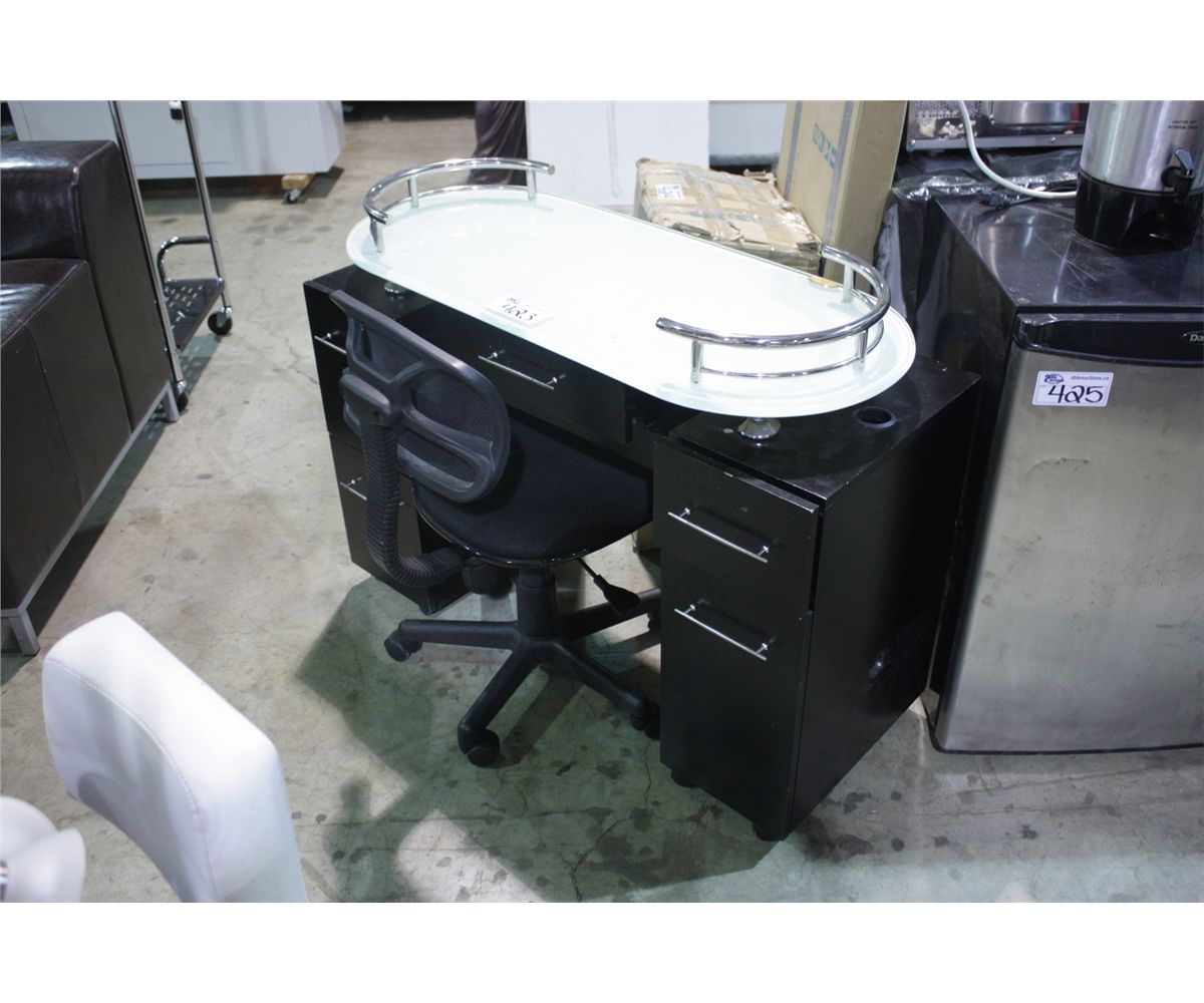 BLACK GLASS TOP MOBILE BEAUTICIAN TABLE