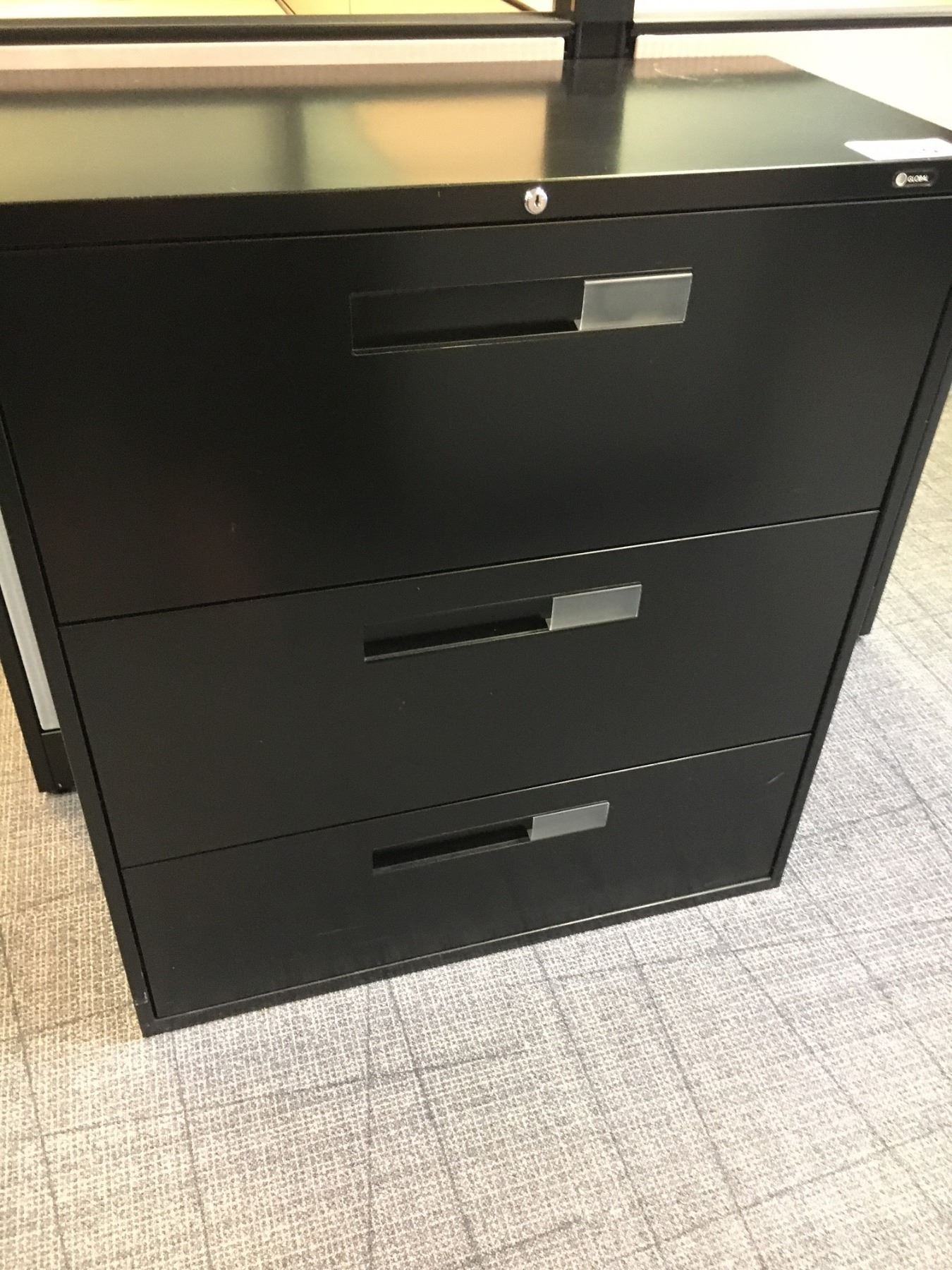 BLACK GLOBAL EVOLVE 3 DRAWER LATERAL FILE CABINET