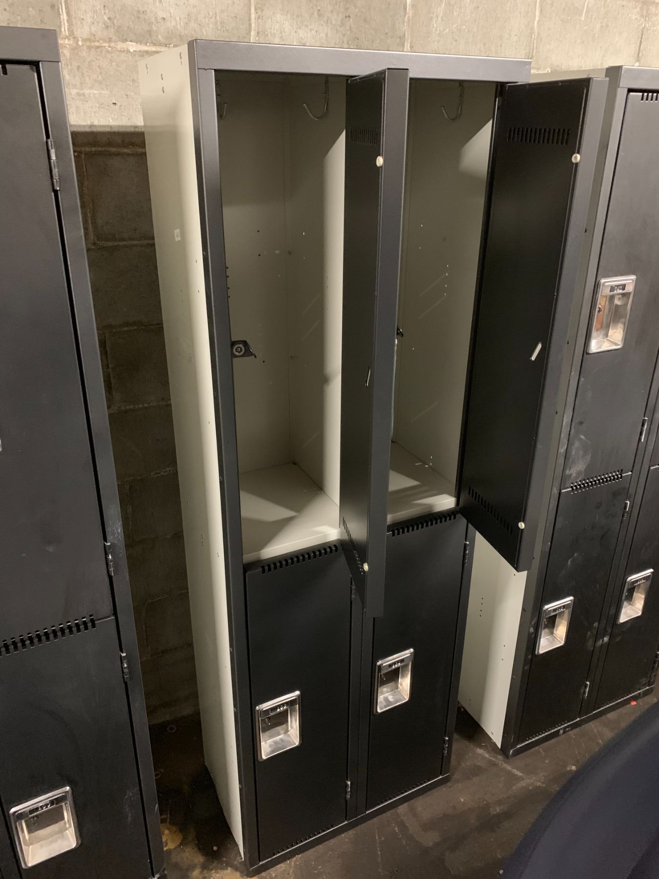 BLACK/GREY 4 DOOR COMMERCIAL LOCKER APPROX. 6'H X 15"D X 2'W