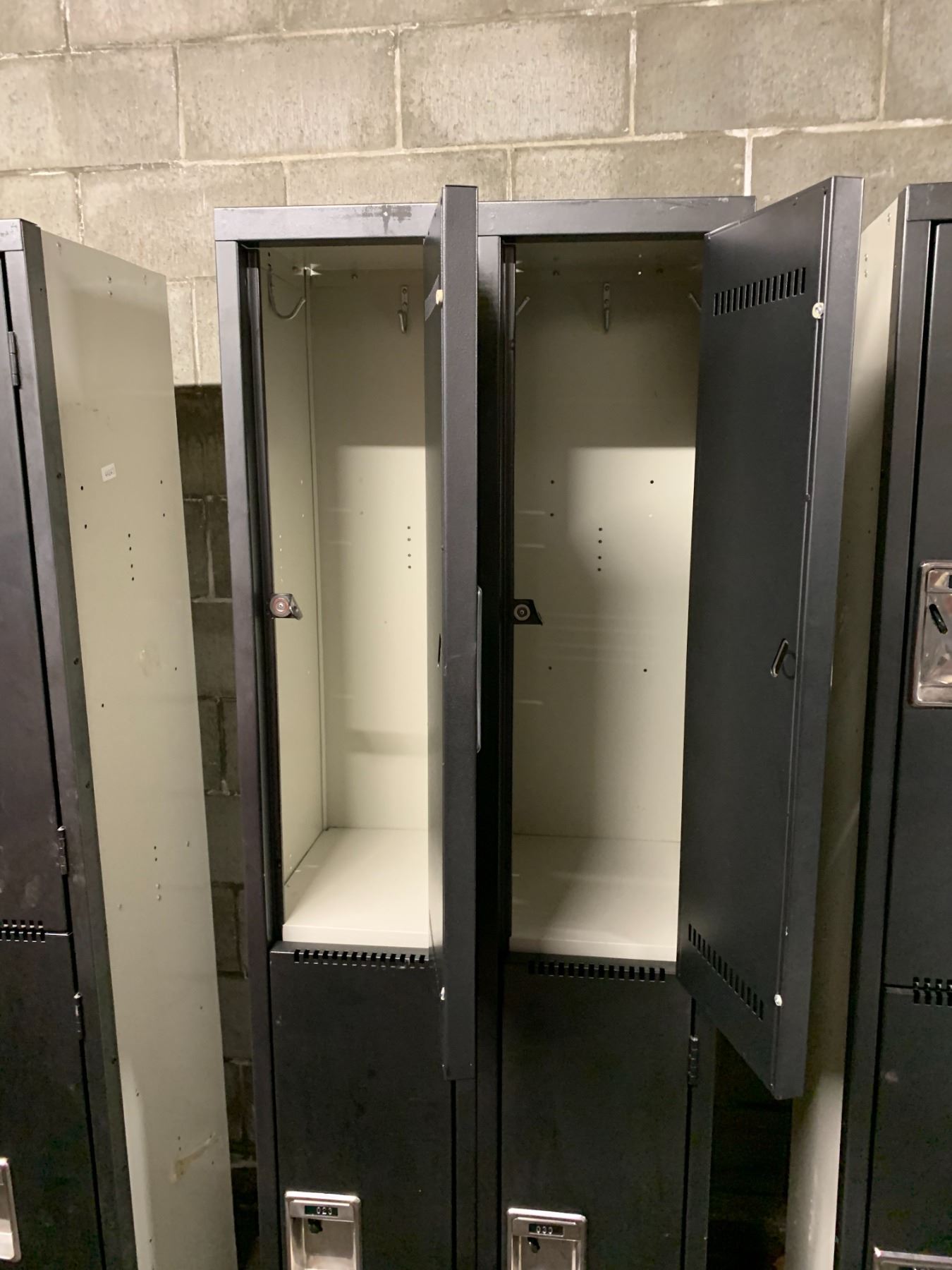 BLACK/GREY 4 DOOR COMMERCIAL LOCKER APPROX. 6'H X 15"D X 2'W