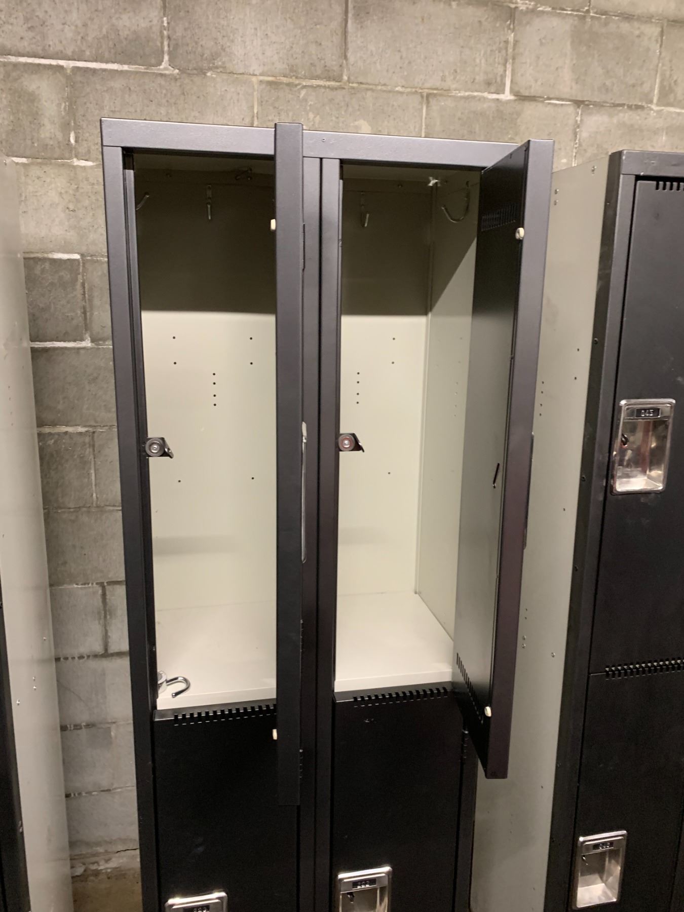 BLACK/GREY 4 DOOR COMMERCIAL LOCKER APPROX. 6'H X 15"D X 2'W