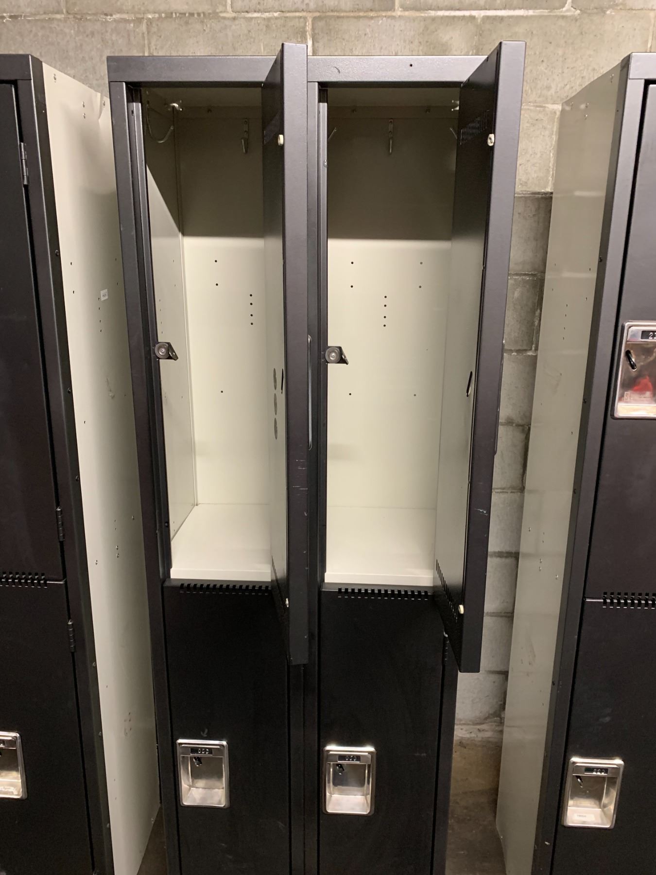 BLACK/GREY 4 DOOR COMMERCIAL LOCKER APPROX. 6'H X 15"D X 2'W